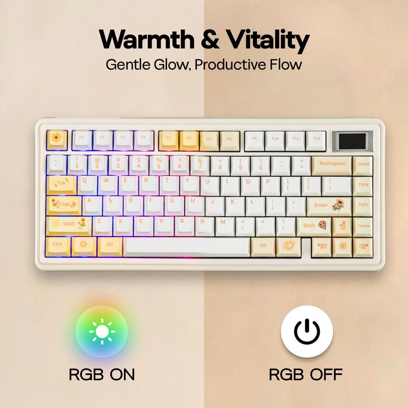 Sunflowers always follow the direction of the sun, embodying not only a natural instinct for growth but also symbolizing sunshine, hope, and a positive attitude toward life. This unique spirit is carefully infused into every detail of the keycap design—from the curvature of the petals to the blending of colors—bringing warmth and vitality to users' daily experiences. Whether immersed in intense gaming battles or focused on typing office documents, the vibrant sunflower pattern under your fingertips quietly conveys positive energy, reminding everyone that even amid a busy routine, one should maintain an optimistic mindset