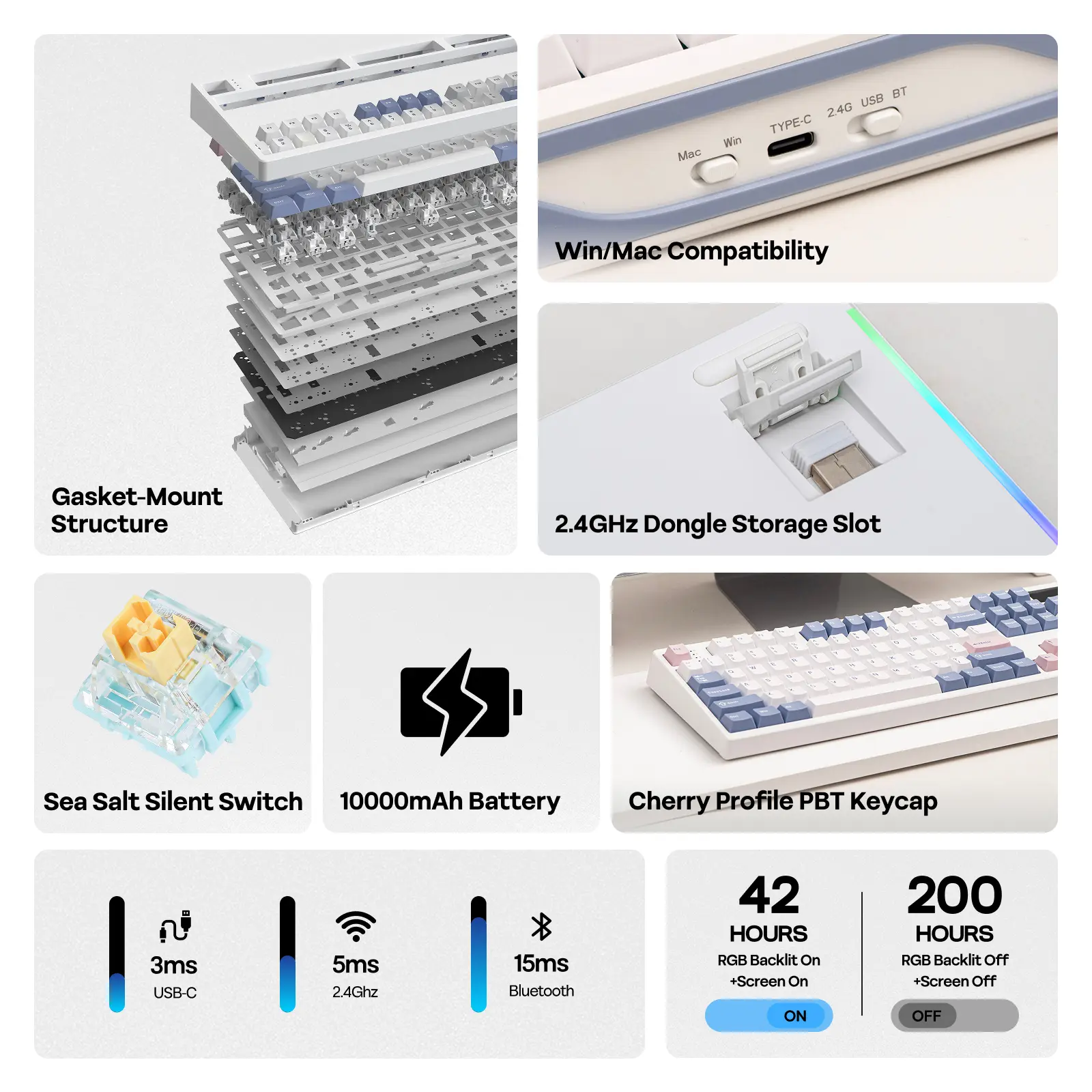 Sound Dampening: 5 Layers of sound dampening, including PORON sandwich foam, IXPE switch pad, Sound-Enhancement PET, PORON switch socket foam, and bottom silicone.