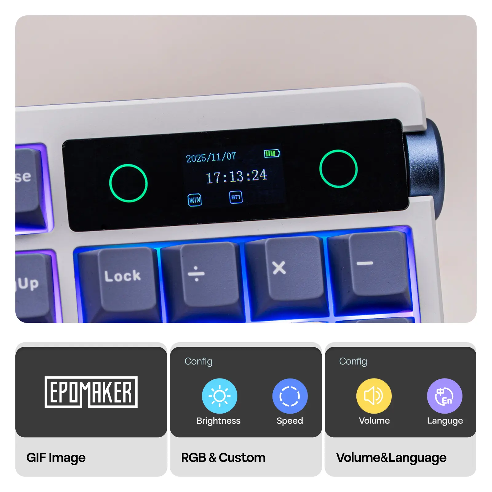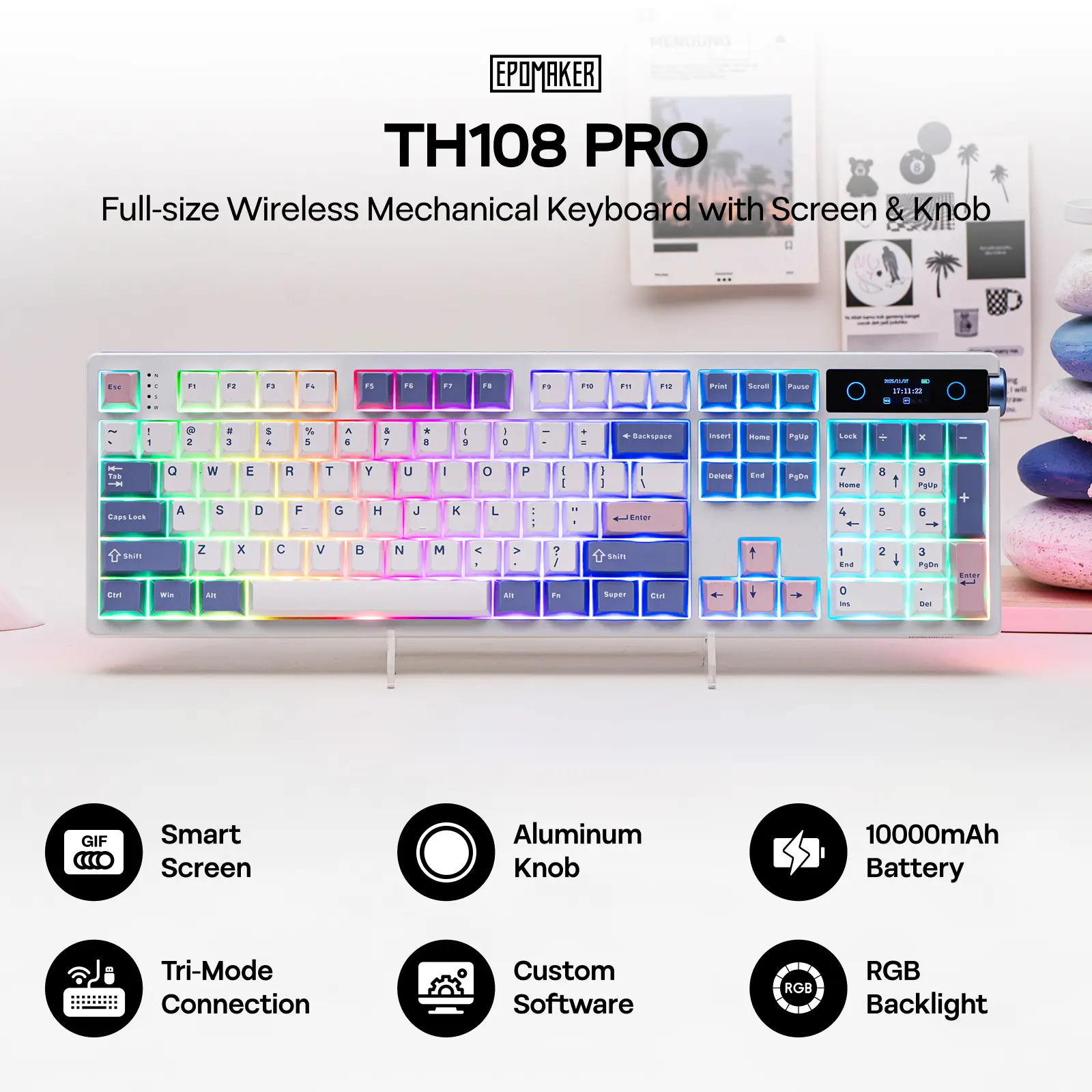 EPOMAKER TH108 PRO Full Size Mechanical Keyboard with Screen & Knob Wireless Gaming Keyboard