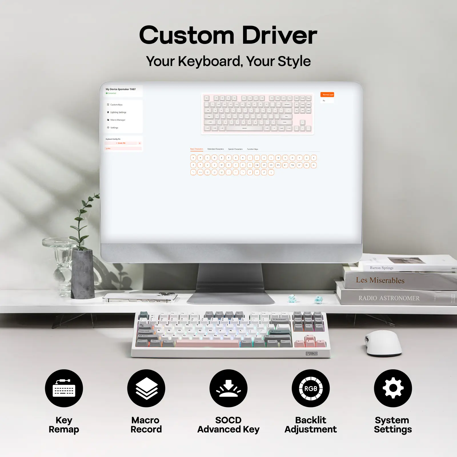Hot-Swappable Custom Keyboard: Embrace total control with the TH87 custom keyboard, ideal for gamers who demand performance and flexibility. The pre-lubed, smooth switches offer a fantastic, consistent typing with no modification required, while the hot-swappable PCB streamline the switch-swap experience for easy customization. Assign a complex key sequence to a single macro key, or remap rarely used keys to essential shortcuts, with programmable software (WIN only), the TH87 custom keyboard is a perfectly tailored extension of your workflow, for a decisive edge in any task.