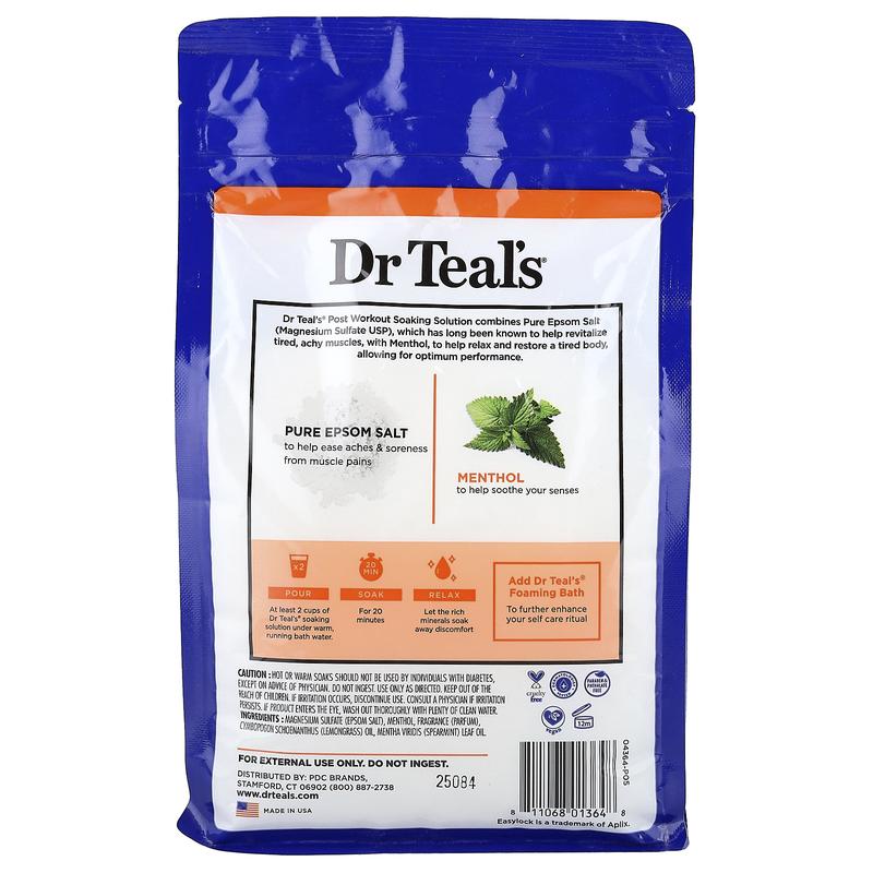 Dr. Teal's Pure Epsom Salt Soaking Solution, Pre & Post Workout, Menthol & Essential Oils, 3 lbs (1.36 kg)