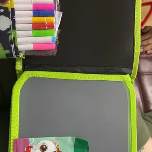 ·Kid's Road Trip Essentials--Kids Erasable Graffiti Book has sticky buttons on the outside to keep it in place and a pens pocket on the inside for 12 watercolor pens. Even in cars, planes and other means of transportation, kids can draw as much as they want.