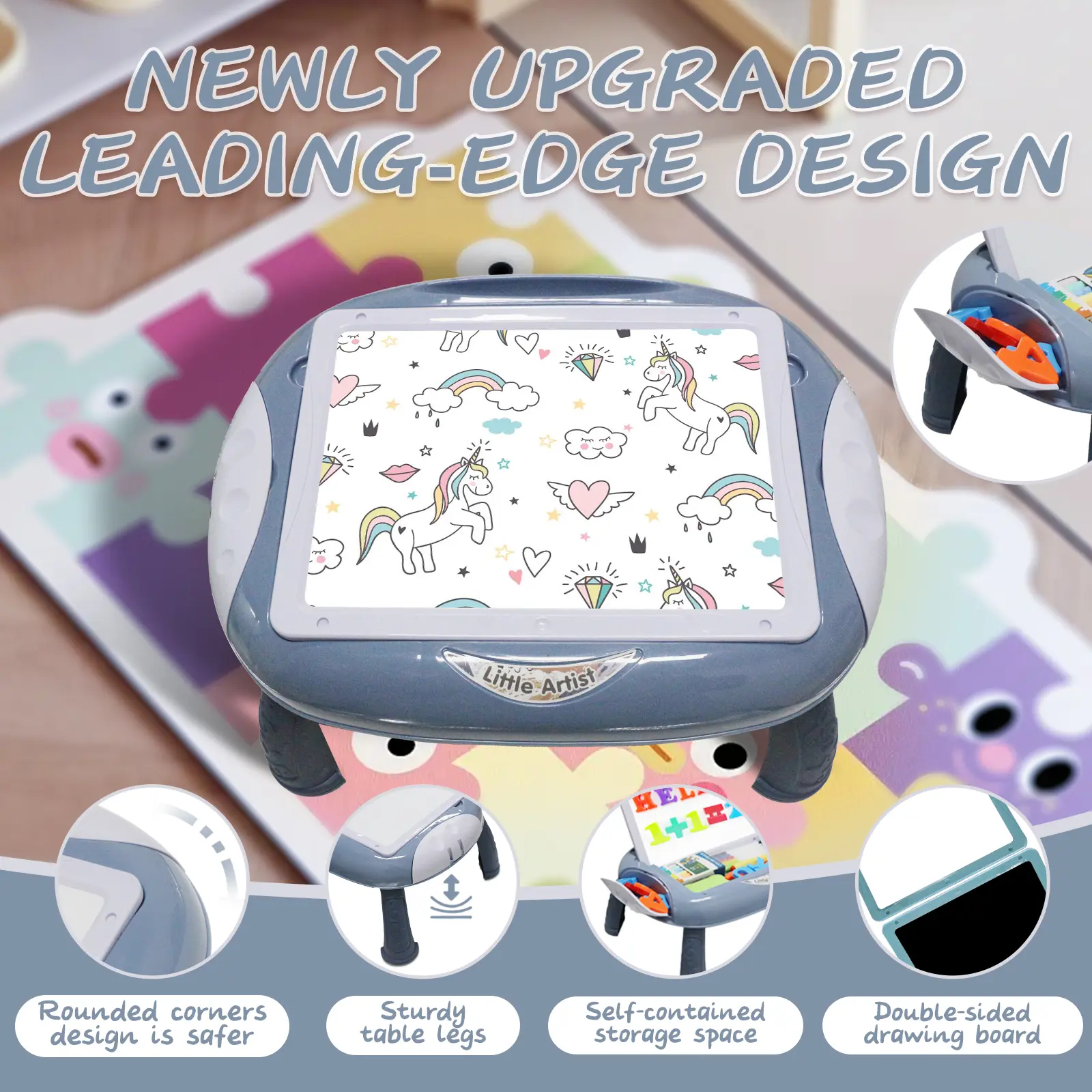 ·Comfortable Seating: Designed for young artists to sit comfortably while working. 🪑