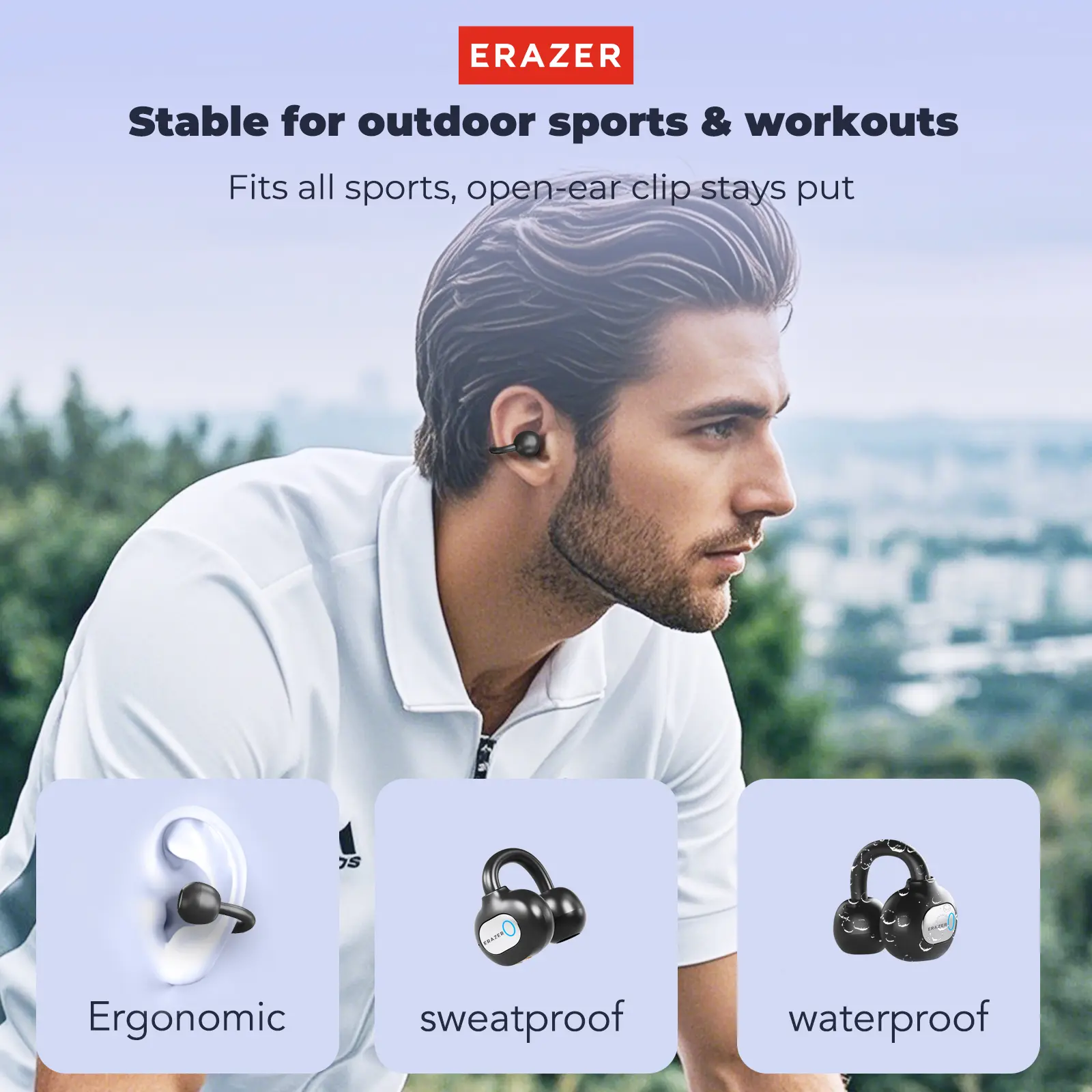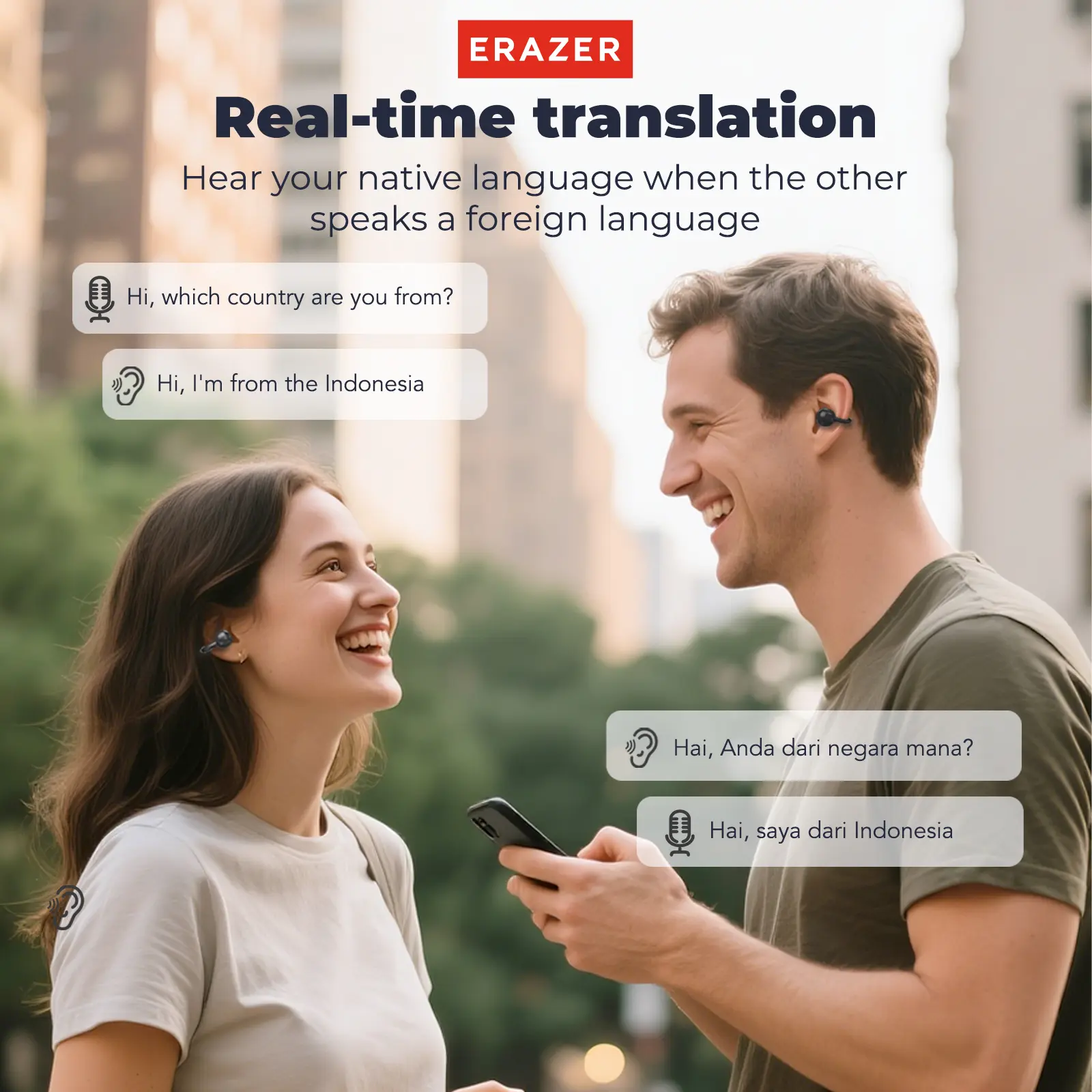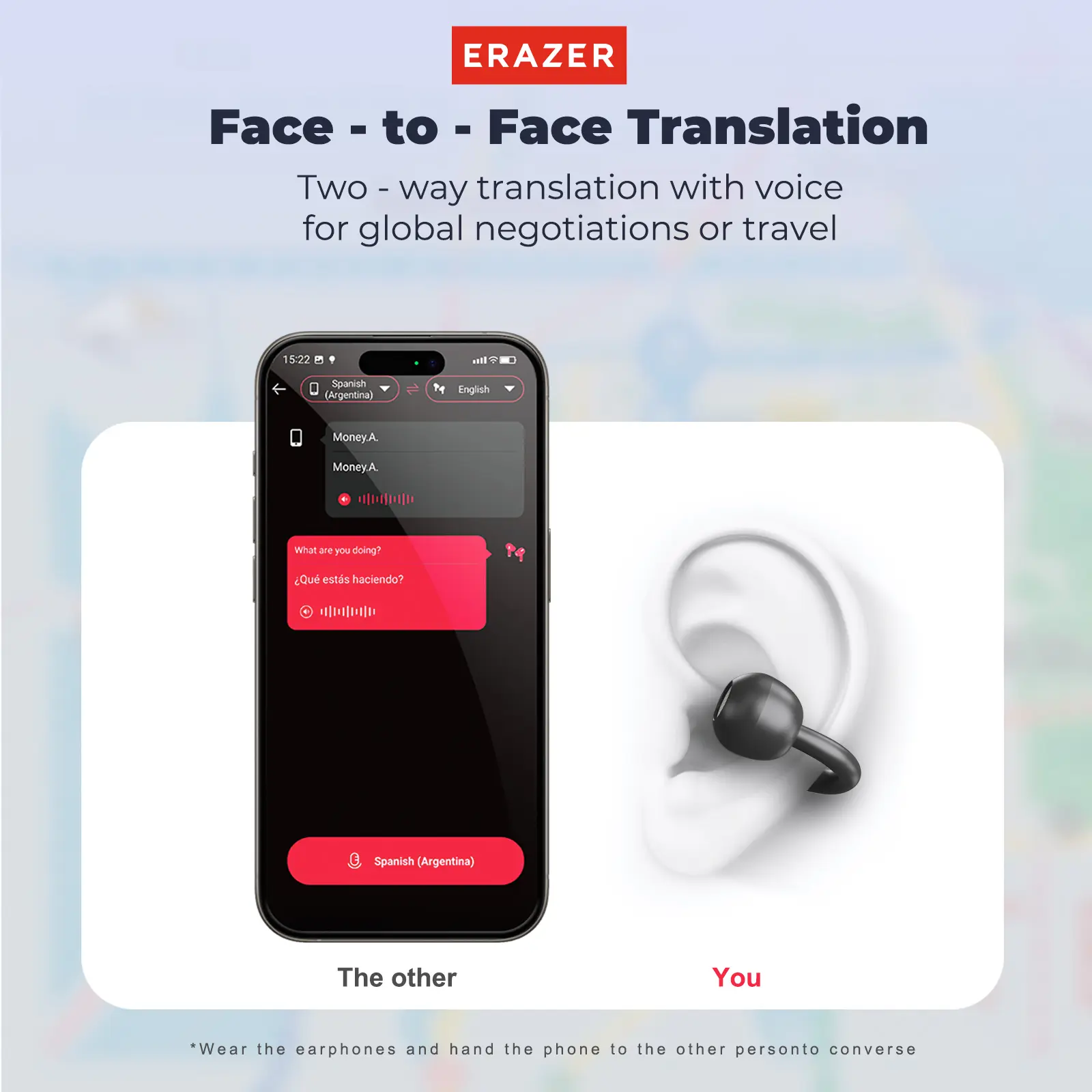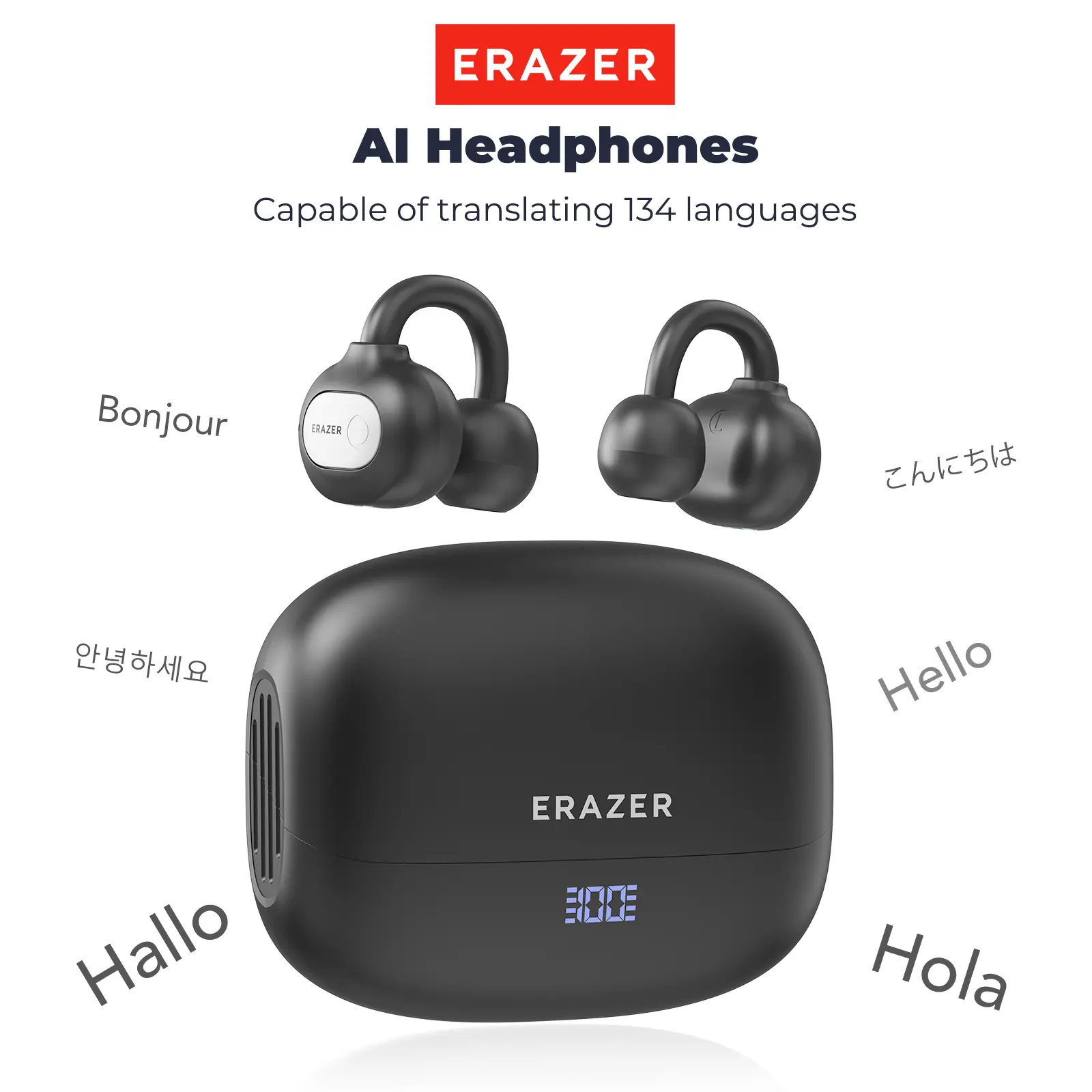 ERAZER XF50 Al Translation Earphones are perfect for traveling or daily use. Hi Fi Sound Quality, 134 Language Translations, Ultra Light Wear, IPX5 Anti Sweat, Waterproof, Stable and Durable Clip on Earbuds. Don’t hurt your ear, and you can wear them for a long time while knowing what’s a going on around you  #aiearbuds #earbuds #ERAZER #aitranslation #translationeaebuds #openearbuds #openearheadphones