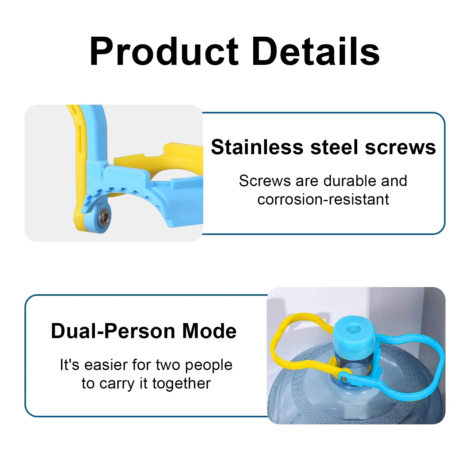 【Protect Your Back & Knee】The practical jug handle for 5-gallon jugs allows you to carry heavy jugs with ease. You can lift two jugs at once for balance or carry the jug in your right hand while holding the banister with your left hand when walking up the stairs which makes lifting large kettles much easier.