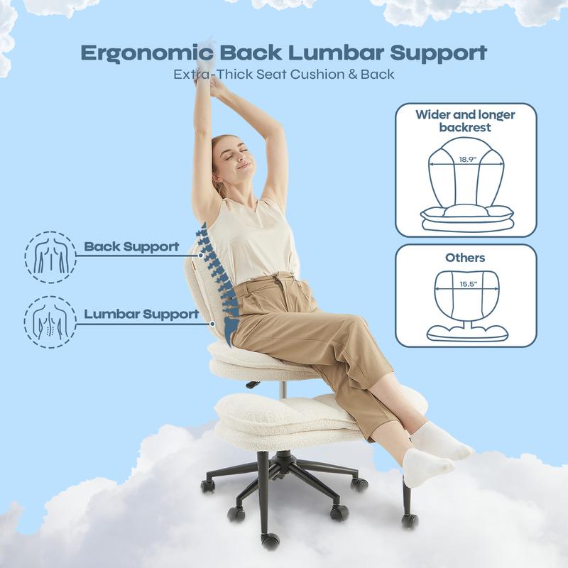 Pinmoco Cloudy Ergonomic Cross Legged Swivel Chair - Adjustable Height, Teddy Fabric, Cloud Comfort Pet-Friendly Desk Chair with Full Lumbar Support, Extra Wide Seat, Versatile for Home & Office Use