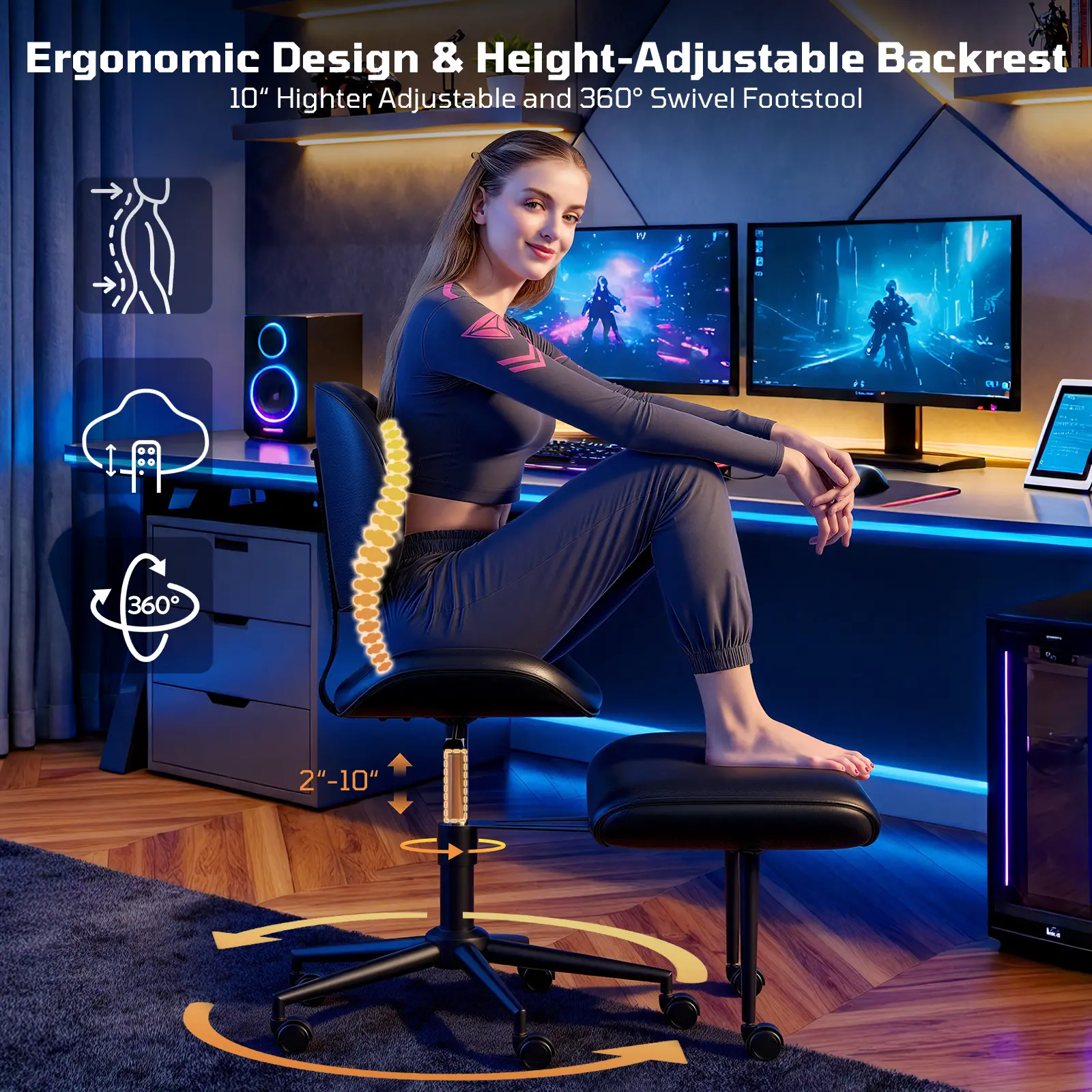 ·360- Swivel& Adjustable Height: Both the upper cushion and footstool can rotate 360 degree, the height between them is adjusted from 0" to 4.7", it gives you more freedom to sit and helps you to improve concentration and creativity.