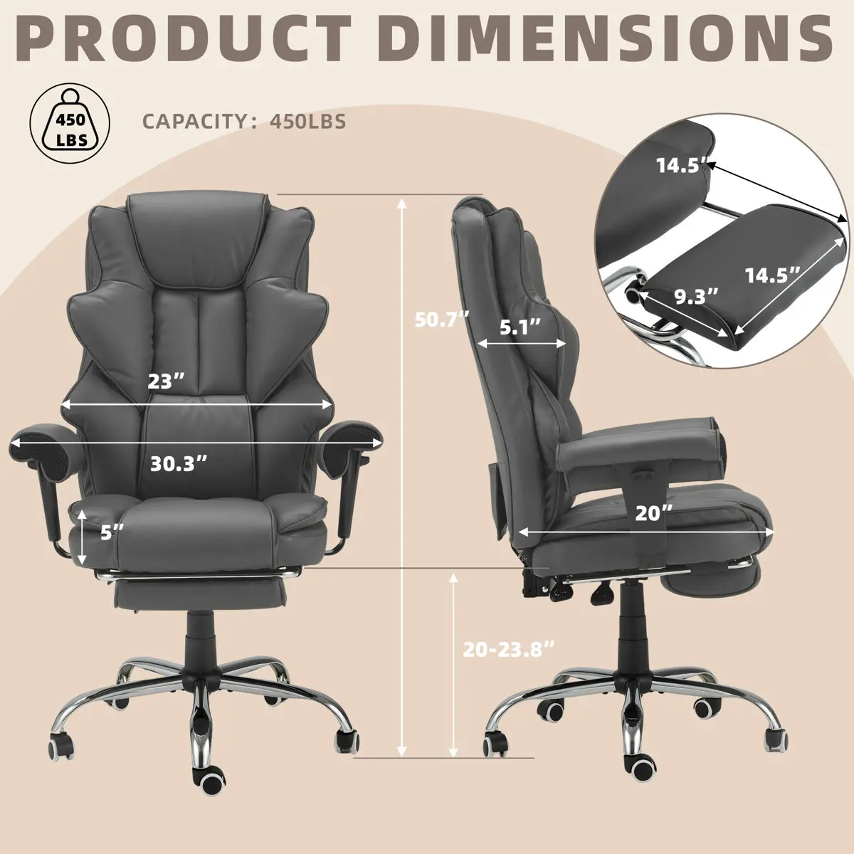 【90°-135° Adjustable】- This big and tall office chair can adjust the backrest from 90 ° to 135 °, and the seat height can be adjusted from 19.3 inches to 22 inches to achieve the desired height. Office chairs with footrests can be used as recliner chairs to relax on busy workdays. This office chair with wheels that can easily rotate 360 degrees, maximizing the use of your workspace.