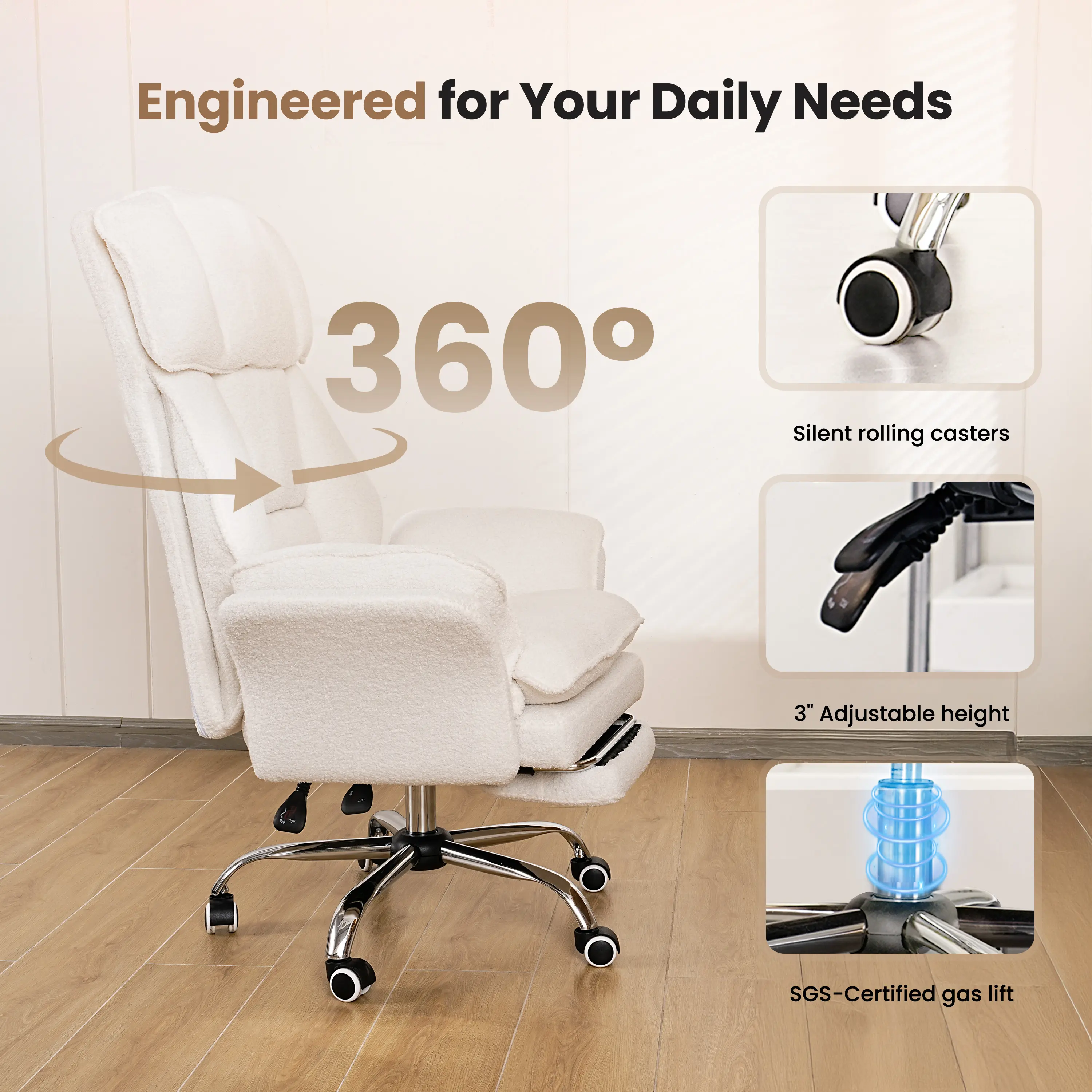 ·Choose Your Comfort Style: The home office desk chair has two material options to choose from. Plush teddy velvet for style, breathability, and cloud-soft comfort. Distressed tech fabric for luxury, scratch-proof durability, and easy cleaning. Both blend perfectly with home offices or room decor.