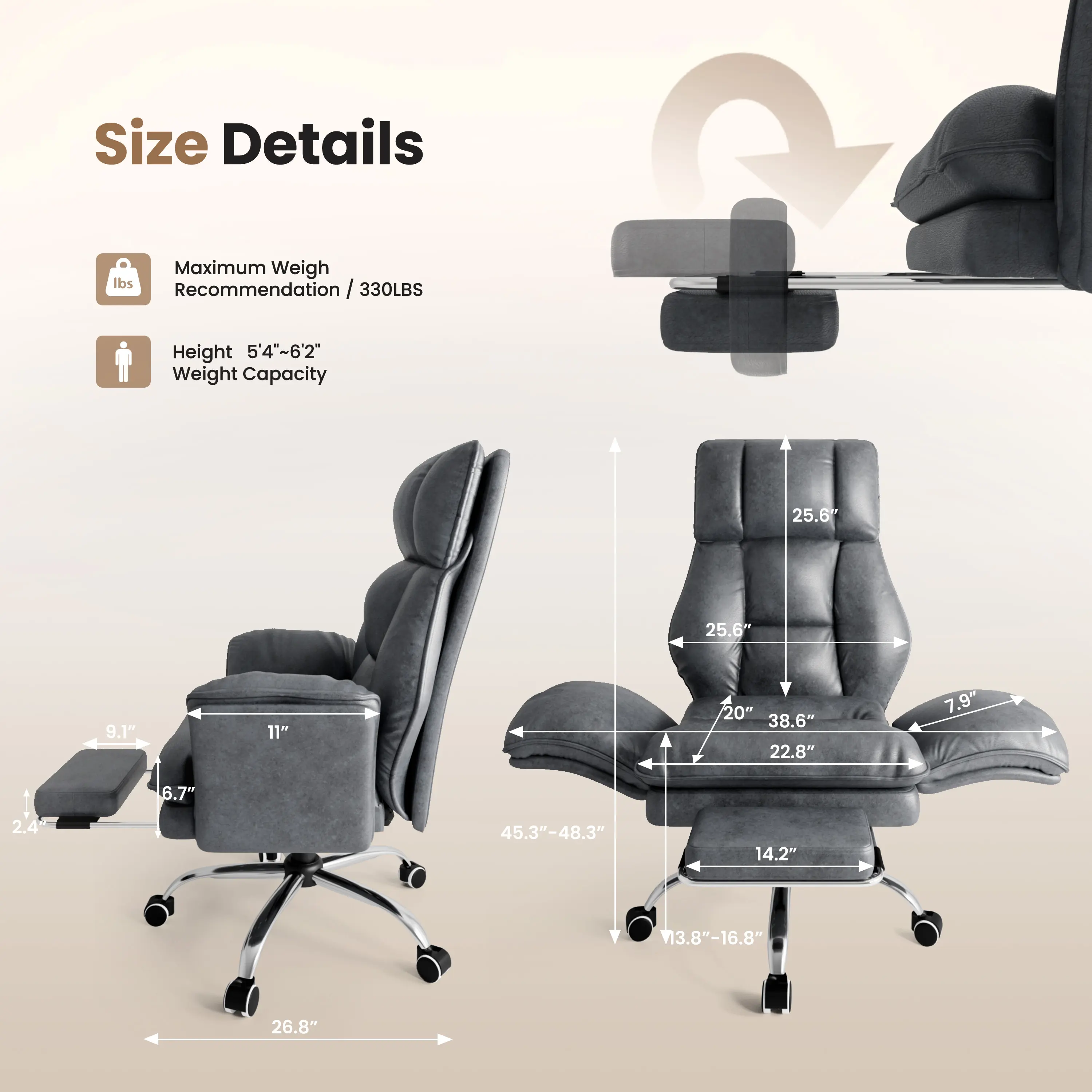 ·15-Min Assembly Big & Tall Chair: Holds up to 400 lbs with adjustable recline, seat height, footrest, and 360° swivel. BIFMA-approved metal base + SGS-certified gas cylinder ensure durability. Sets up in 15 minutes—all hardware included.
