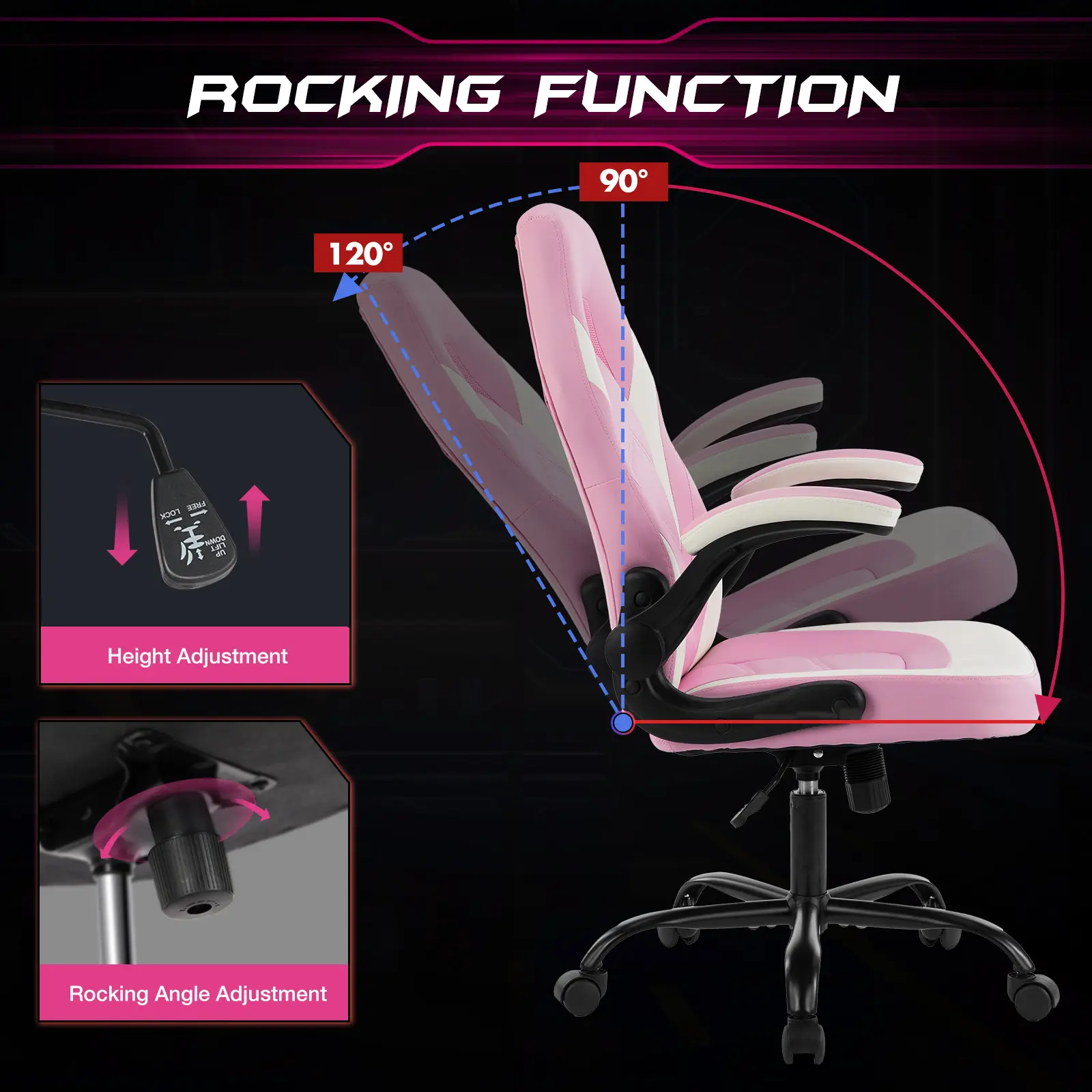 ·【ADJUSTABLE HEIGHT & FLIP-UP ARMREST】 The computer office chair is height adjustable (adjustment range: 18 inches - 22 inches), the 90° flip-up armrests help you save space, and the chair can be easily pushed under a desk when the armrests are flipped up and locked in the upright position.