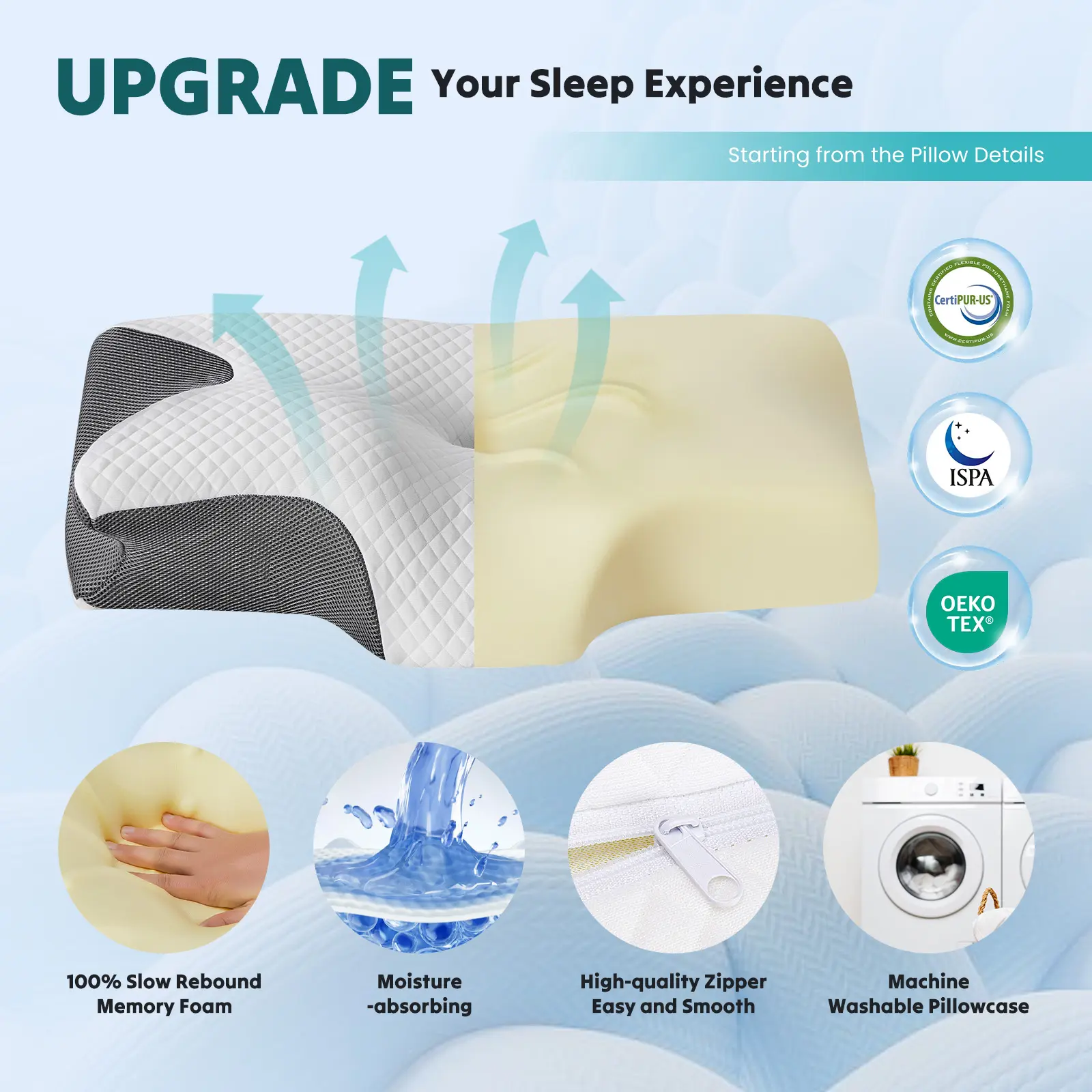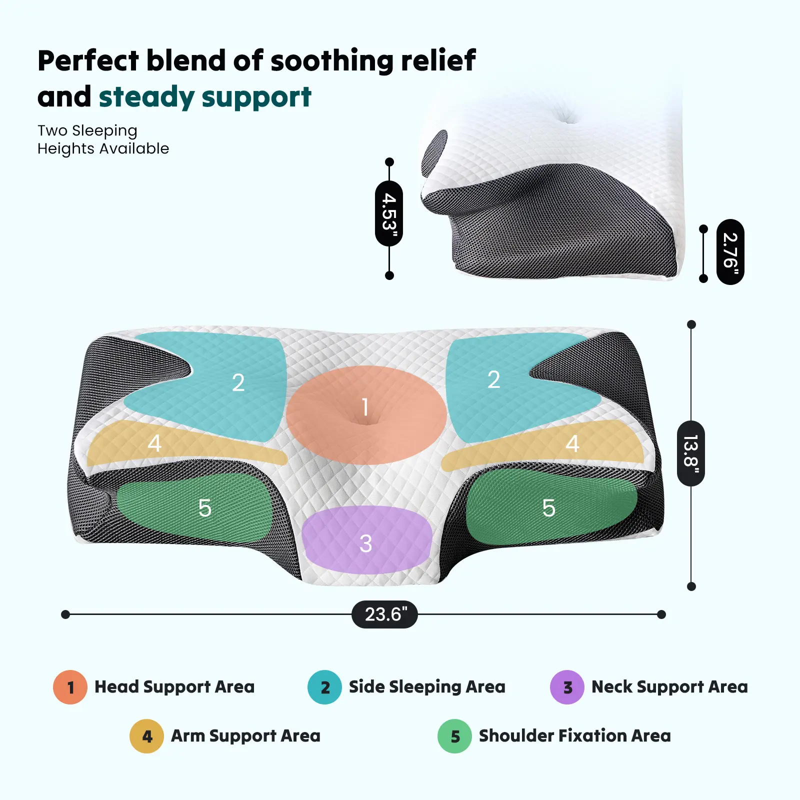 ·Ergonomic Cervical Support Scientifically contoured to align the neck and spine, helping relieve pressure on the cervical area and reducing neck and shoulder pain.