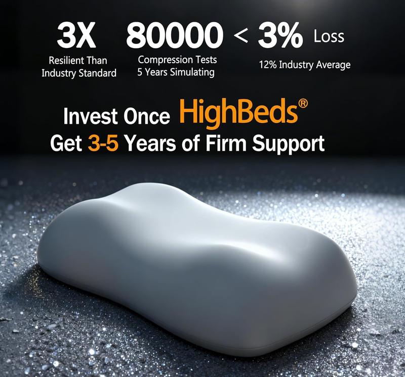 ·NVEST ONCE IN HIGHBEDS MEMORY FOAM PILLOW, ENJOY FIRM SUPPORT THAT LASTS 3–5 YEARS, WORTH EVERY PENNY| Stop wasting money on frequent pillow replacements! Though initially priced 15% higher than ordinary memory foam pillows, HighBeds resists deformation 3x better than industry standards. It endured 80,000 compression tests (simulating 5 years of use) with just 3% height loss. It ensures consistent cervical support and spinal alignment night after night, preventing neck pain and strain caused by sagging pillows. At 5-year use, your daily investment drops below $0.15 – cheaper than a coffee sip yet crucial for pain-free mornings. A true health-economy synergy for your cervical spine wellness