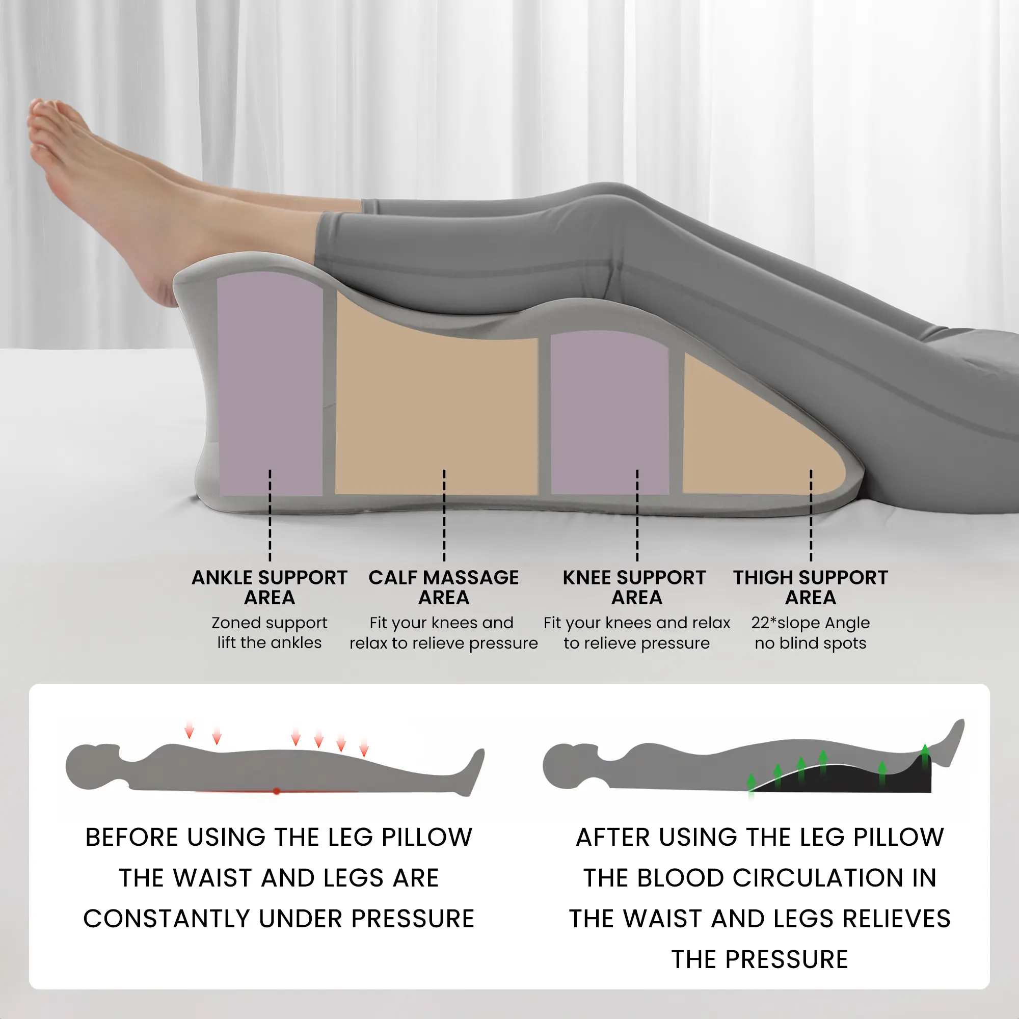 • Leg elevation pillow for improved circulation