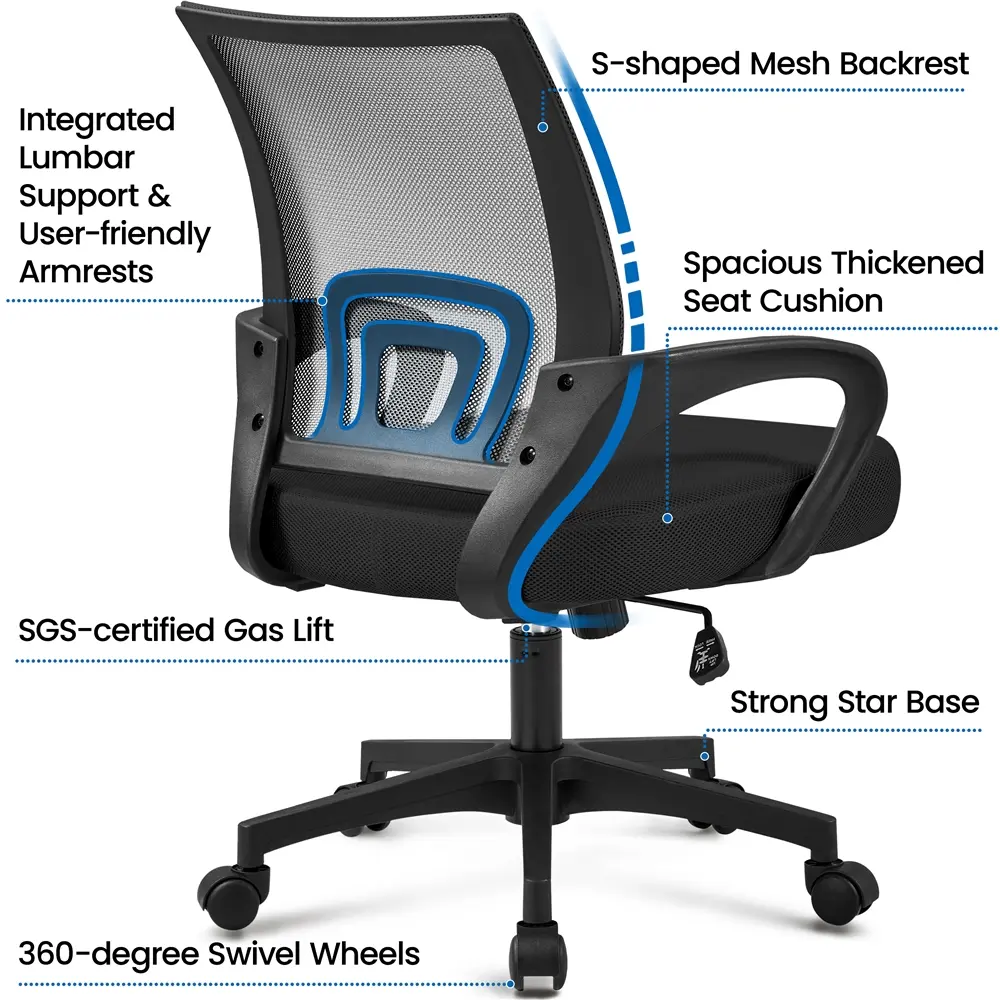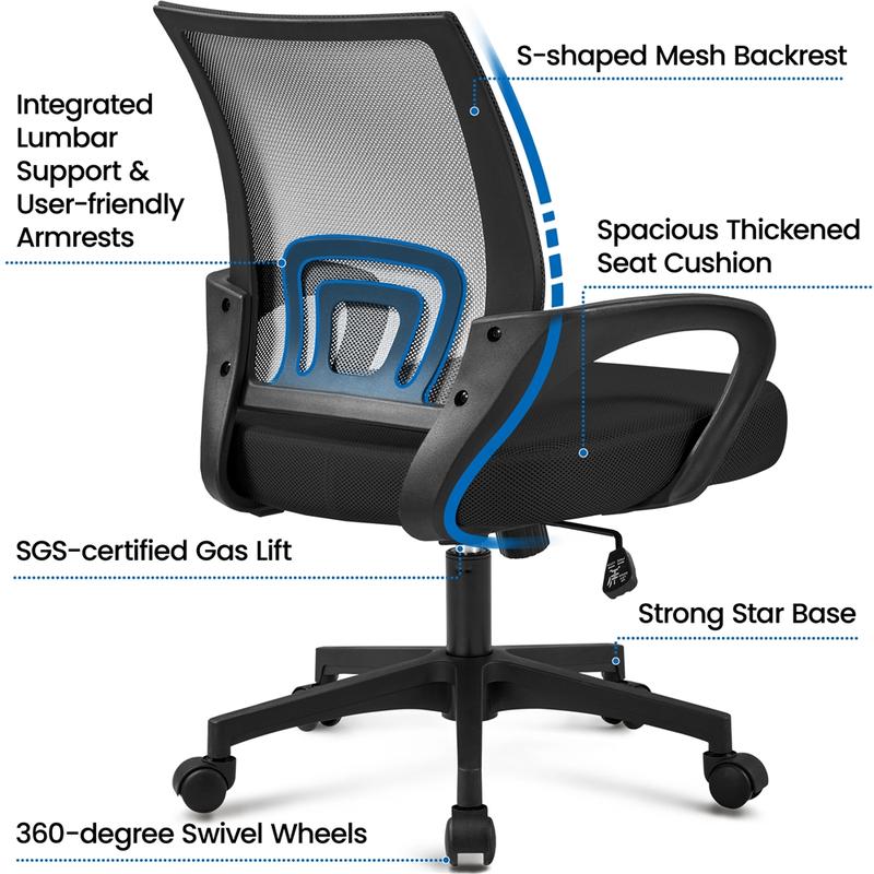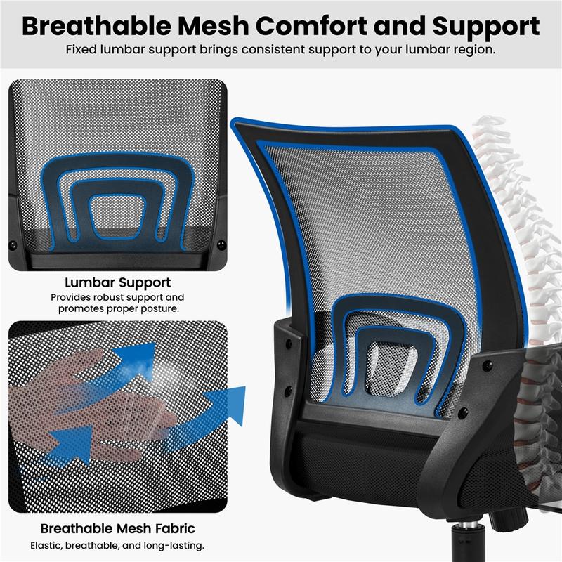 Densely woven mesh backrest promotes airflow to keep you cool and dry, while the ergonomic mid-back design cradles your lower and mid-spine, encouraging healthy posture.