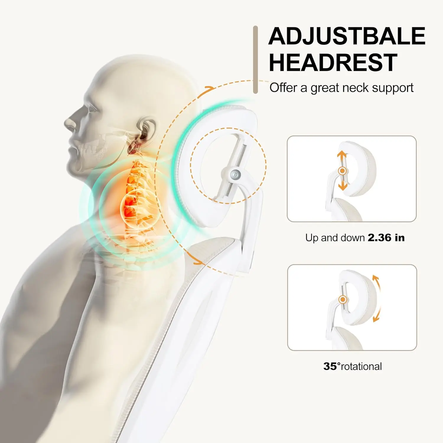 ·【Dual Backrest Support & Adjustable Headrest 】The ergonomic office chair is specially engineered with a dual backrest structure to provide optimal support for both the backrest and lumbar area.and the headrest support is also adjustable,so you can move up and down to the desired height according to your needs.Moves the headrest for neck alignment, support,and reduced muscle strain.