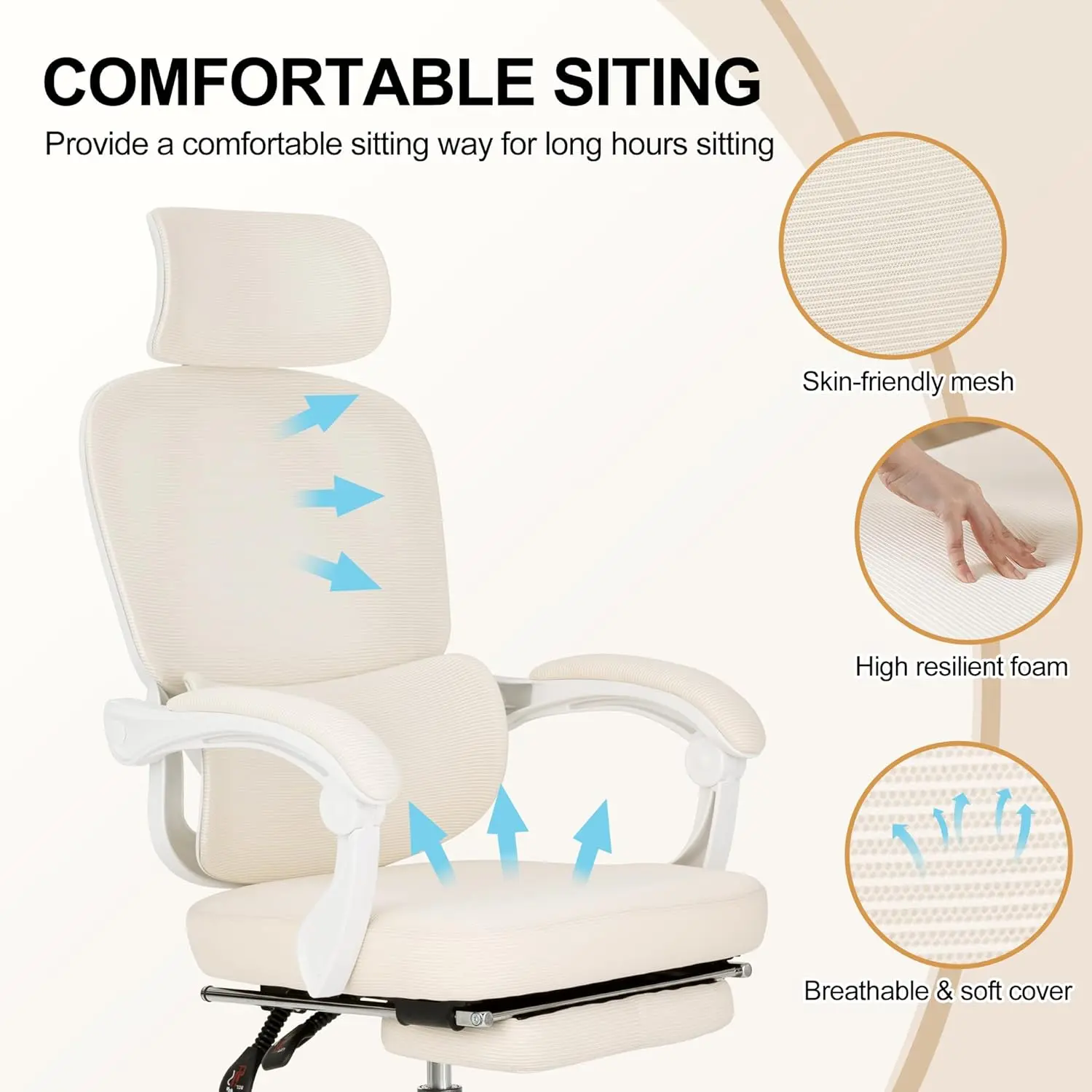 ·【Breathable Mesh & Soft Seat Cushion】Premium Mesh office chair with foot rest features flexible non-pattern mesh fabric and high resilience foam for the seat.Keeping your back cool and comfortable,and allowing you to sit focused and relaxed at the same time.