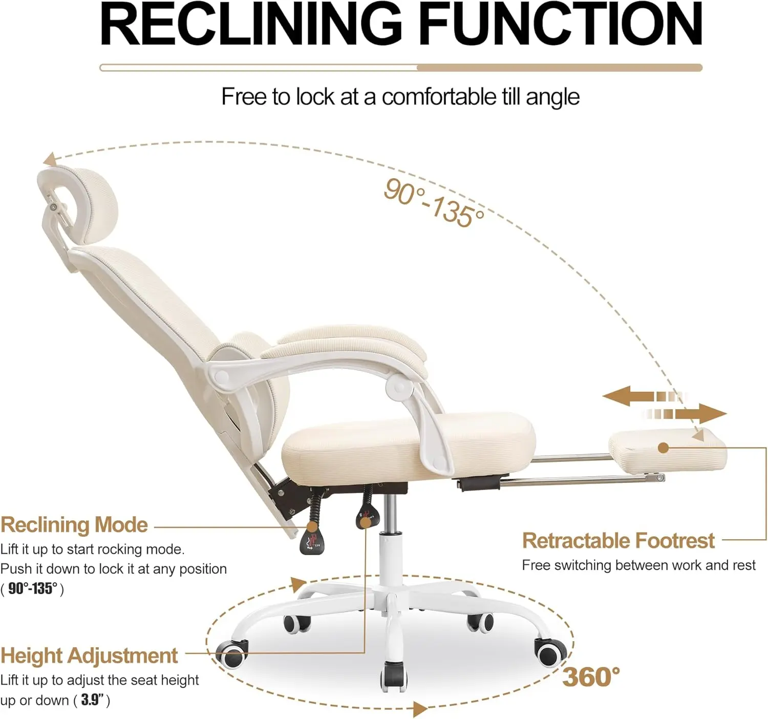·【90°-135° Multi-angle Tilt】The backrest can be easily adjusted to various tilt angles,adapting to different sitting positions and postures.Computer chair equipped with an extendable leg rest,it allows for better freedom to switch between work and rest.