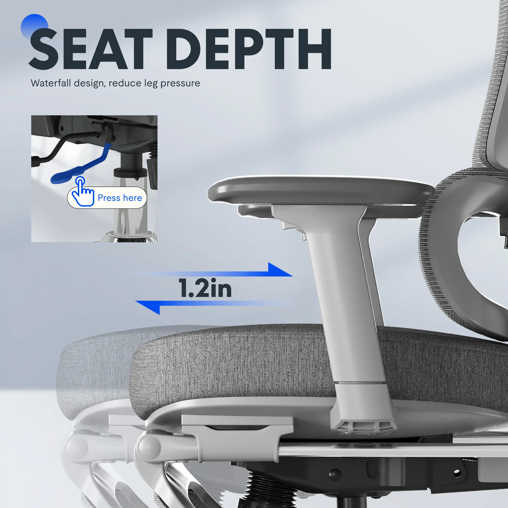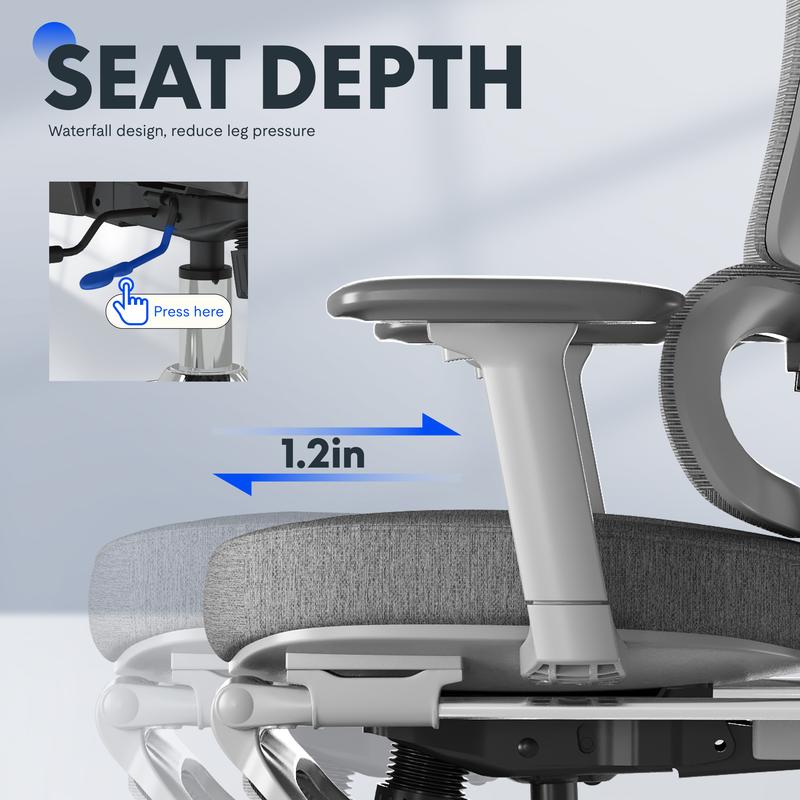·【Customizable Ergonomic Comfort】Adjust your sitting experience with seat height (20.1"–22.4"), seat depth (17"–20"), and multi-angle tilt functions. Designed to fit users from 5'1" to 6'2", ensuring all-day comfort for a wide range of body types.