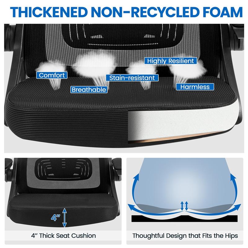 3.ćCushioned Seat & Mesh BackćThis office desk chair is designed to bring the combined benefits of a foam padded seat and a mesh backrest. Extra-wide cushioned seat is elastic and not easy to deform, offering optimal support for a long period of sitting. Plus, the high backrest wrapped with breathable mesh provides you with a cooler sitting experience and full back support.