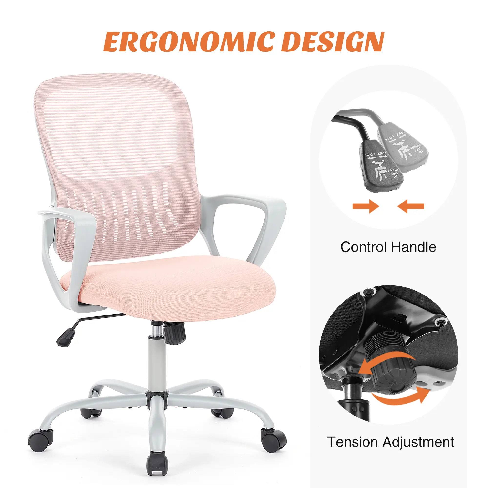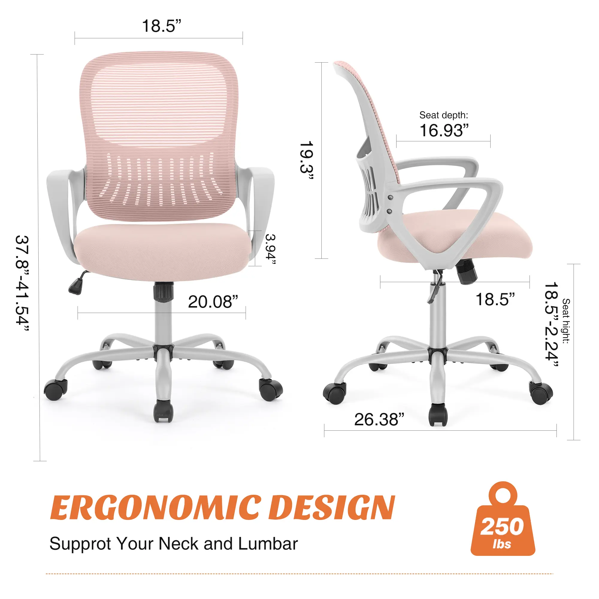 ·【Ergonomic Backrest】 the overall design of this office chair is ergonomic, the backrest and lumbar support fit the natural curve of your lower back, let your body and mesh chair perfectly fit, and take the spinal pain away from your body. It provides comfortable support, which helps you maintain a relaxed posture during long hours of work.