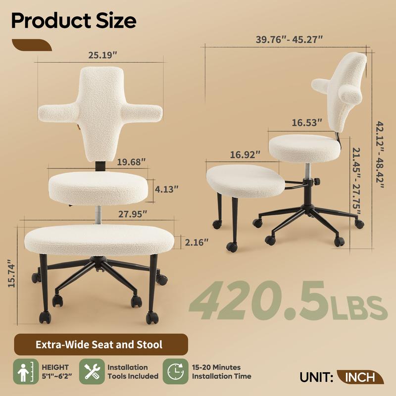·Supporting Multiple Sitting Postures: Our extra-wide and extra-high double-layer design allows for freedom of movement, supporting various postures such as cross-legged sitting, squatting, and kneeling. The 4-inch thick seat cushion and wide footrest provide comfortable support for the hips, knees, and ankles.