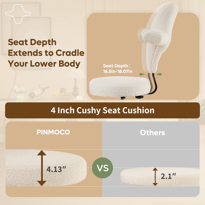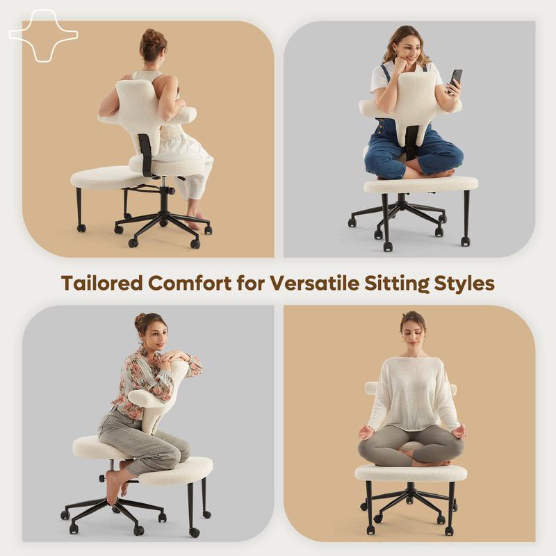 ·The Pinmoco Ergonomic Premium cross legged office Swivel Chair offers a dynamic seating posture, perfect for casual home office use, meditation, and yoga enthusiasts, meeting the flexible needs of various scenarios. The stylish design provides natural elbow support, allowing you to customize your seating experience.