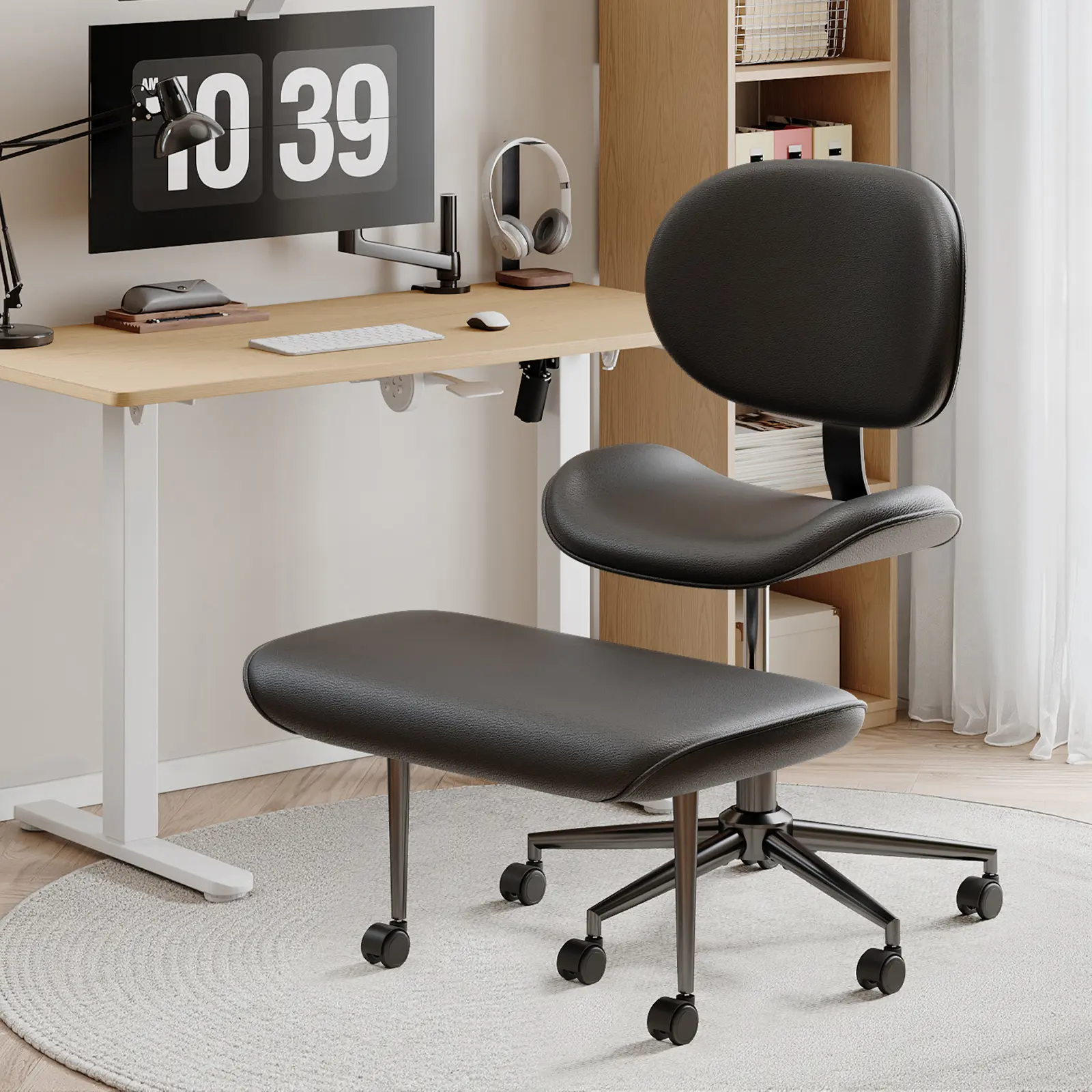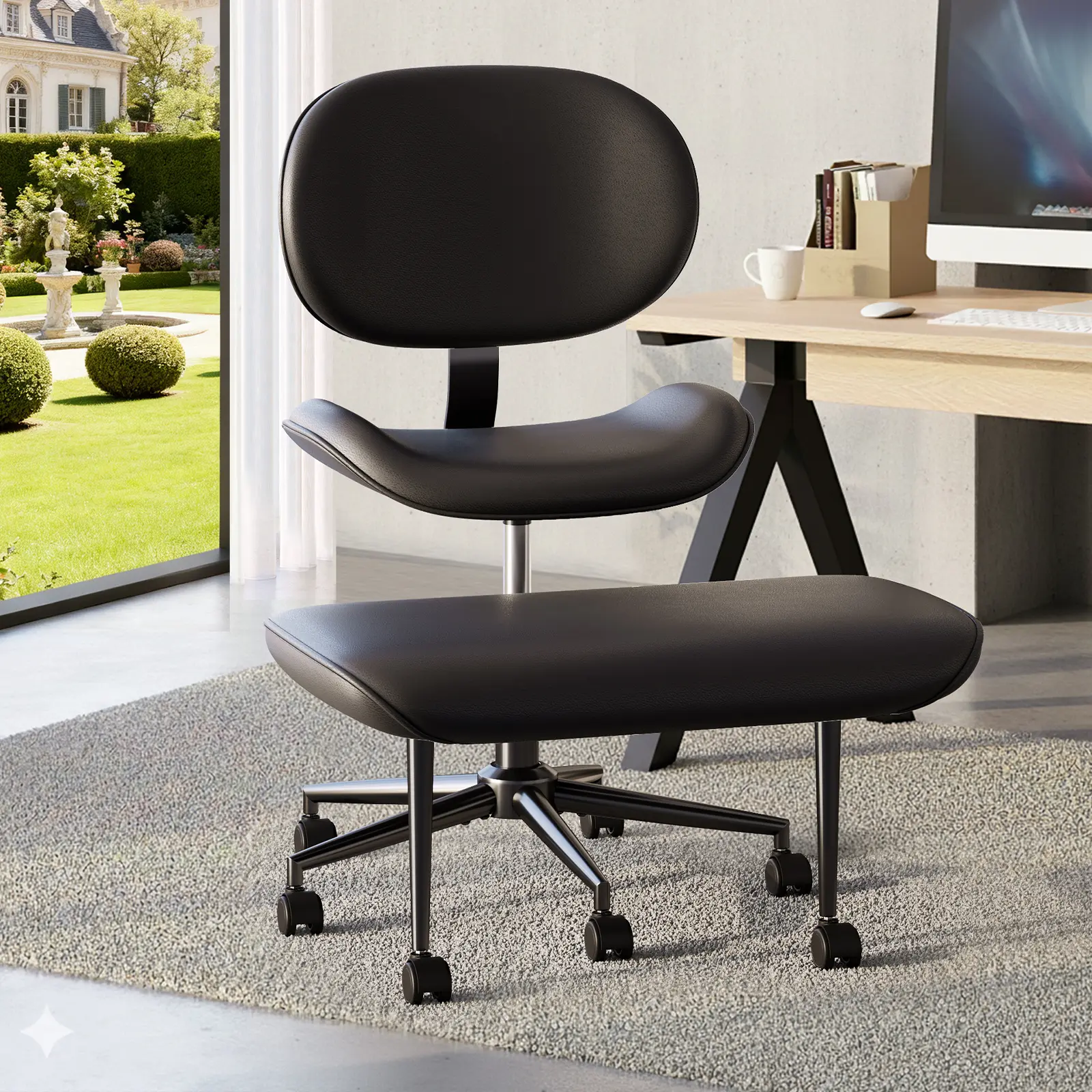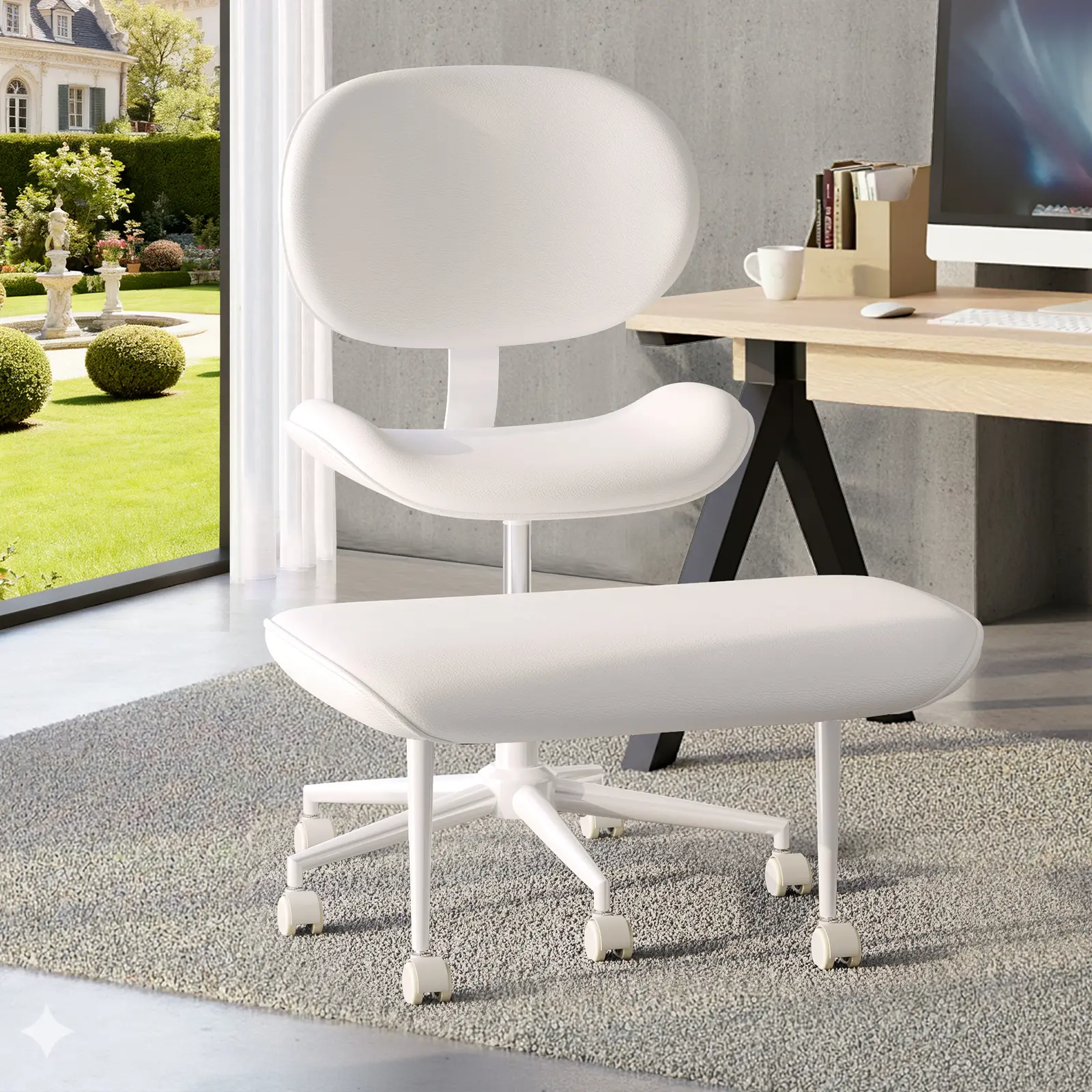 ·360- Swivel& Adjustable Height: Both the upper cushion and footstool can rotate 360 degree, the height between them is adjusted from 0" to 4.7", it gives you more freedom to sit and helps you to improve concentration and creativity.