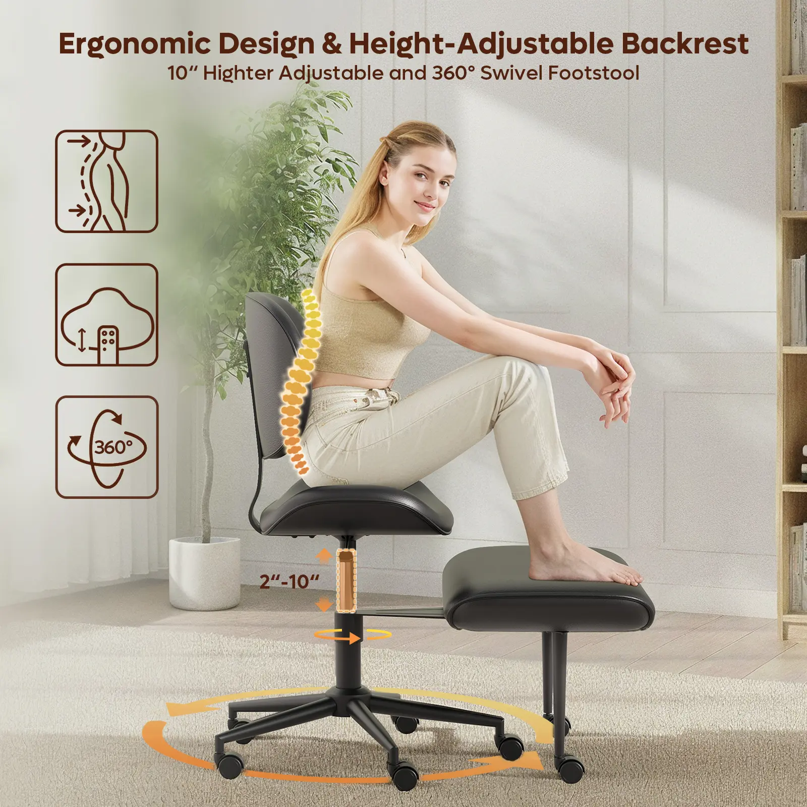 ·Nost & Host Upgraded Ergonomic Cross Legged Swivel Chair, Adjustable Height, Meditation& ADHA Chair with Back Support: Unique 2-layer design and can be used for cross-legged, squatting, kneeling and other postures. It can be adjusted to different angles of your body, helps you relax the body, promote blood circulation and reduce leg swelling or numbness caused by prolonged sitting. It also helps alleviate mental stress and tension, promoting overall physical and mental relaxation.