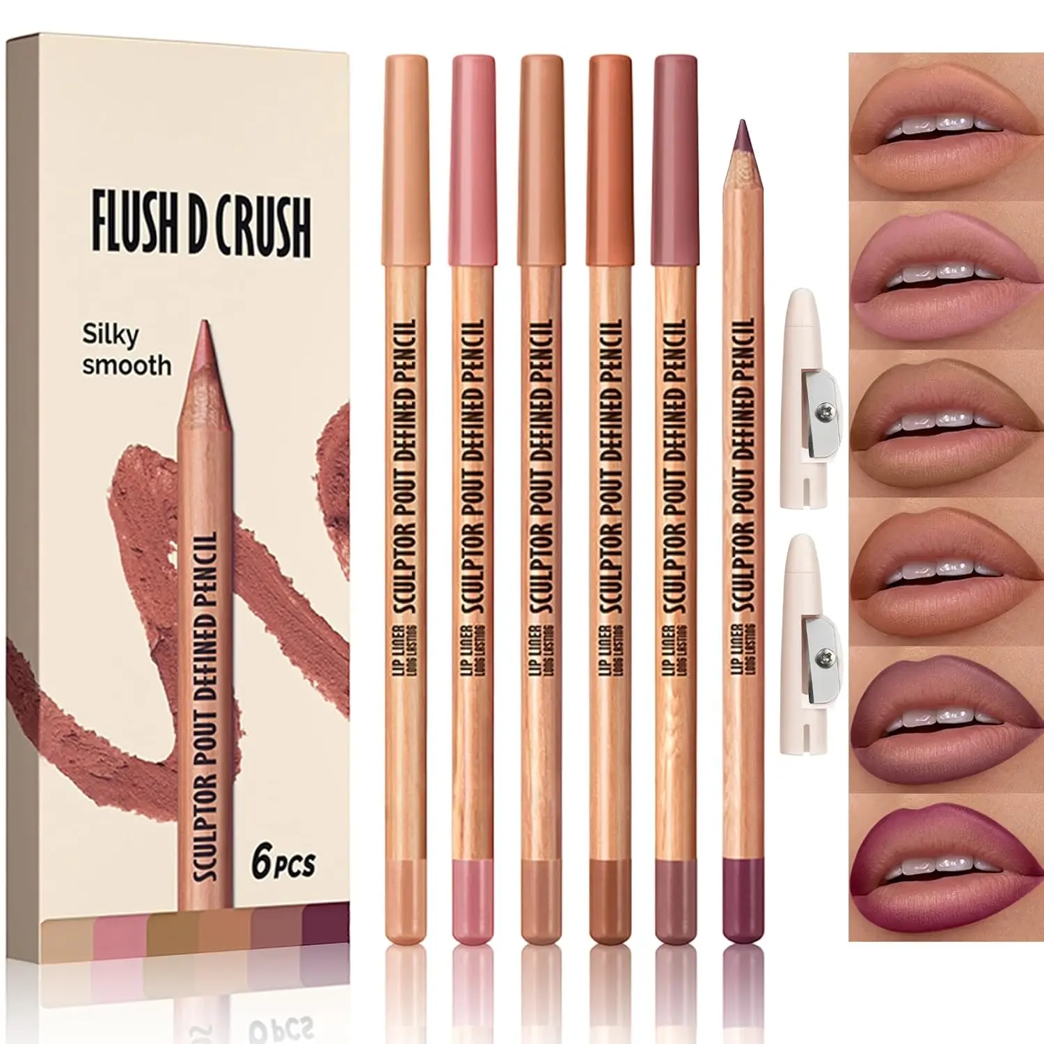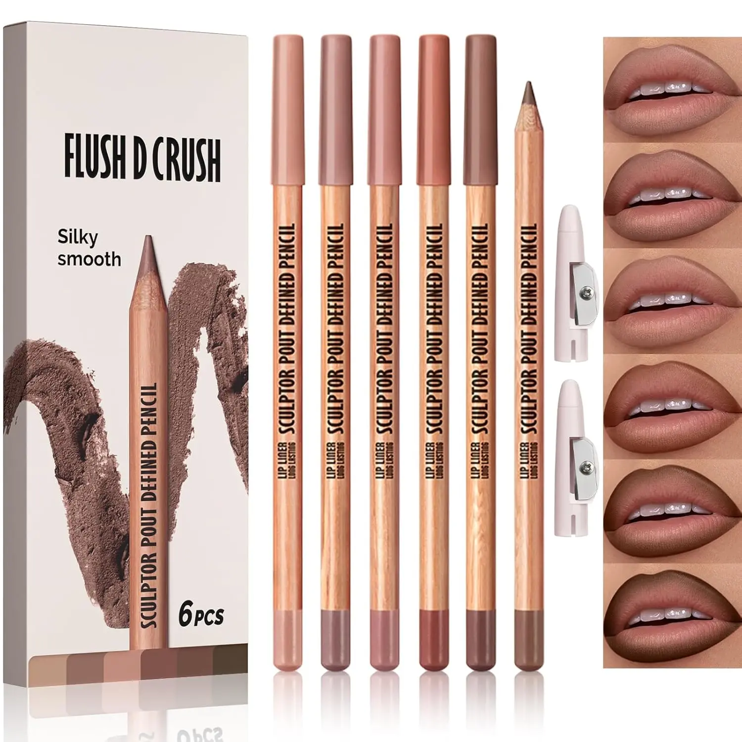Erinde Nude Matte Lip Liner Set, 6 Colors Lipliner Pencil Pack with Sharpener for Define & Sculpt Lip, Long-Lasting Waterproof Non-Smudge Brown Lipliner Delineador De Labios, 02 Nude Brown Series