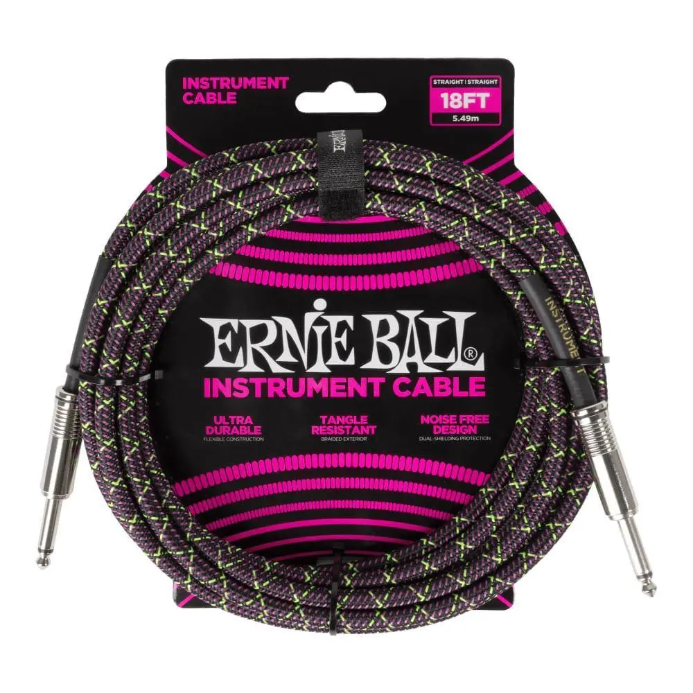 Ernie Ball instrument cables feature a high-quality design made with superior components that are built to last. Dual-conductors deliver reliably clear tone with crisp highs, tight mids, and rich harmonics. Multiple shielding materials preserve the signal with low handling noise, and the braided jacket exterior provides a tangle-resistant experience. Cable length 18ft (5.49m).