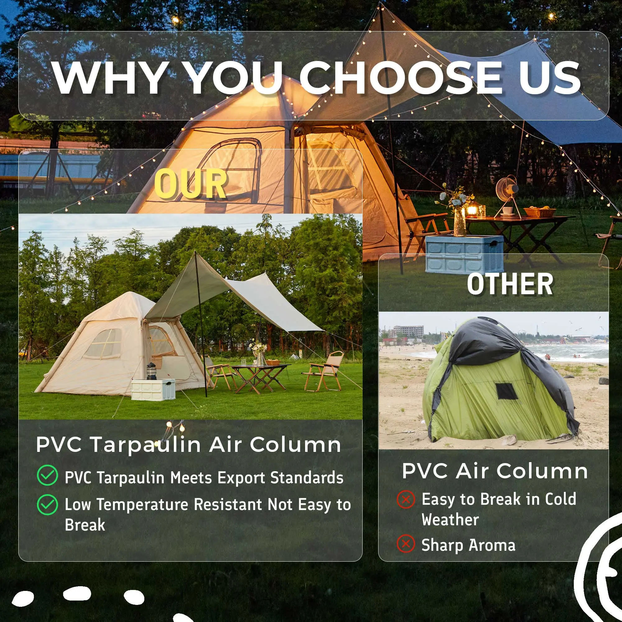 Whether you're camping with family or friends, the EROMMY Inflatable Camping Tents are your reliable companion for a memorable outdoor adventure.