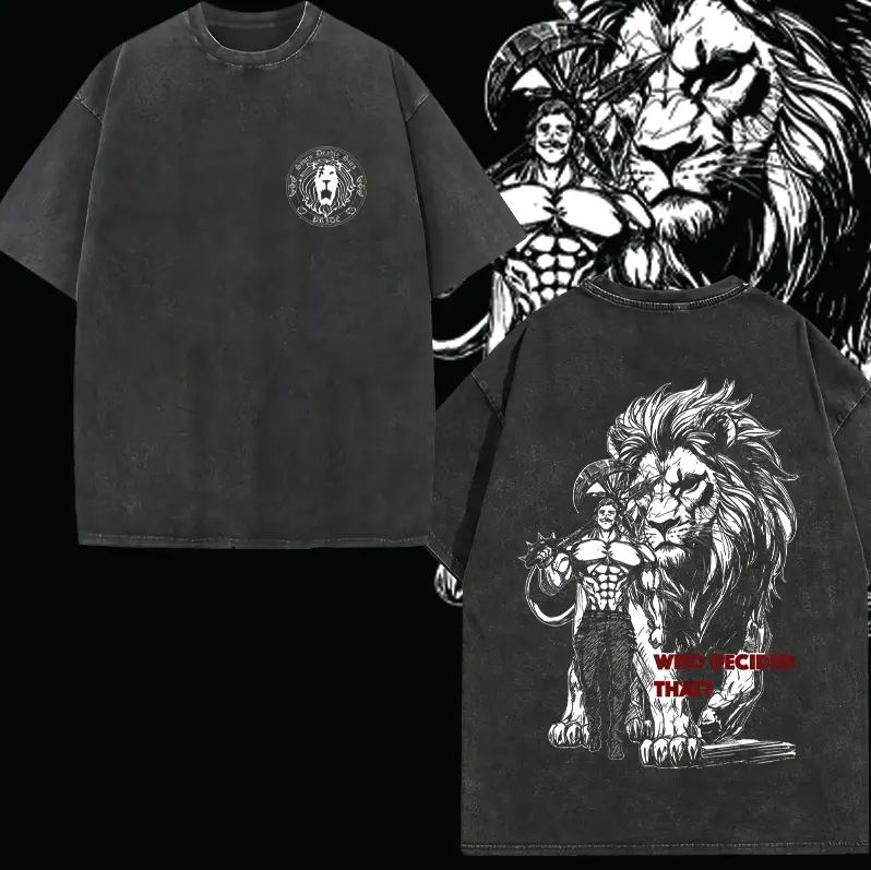5. Escanor Seven Deadly Sins Anime Wash Tee , Vintage Washed Graphic Tee, Oversized Streetwear Fit, Unisex Casual Top, Gift for Anime Fans