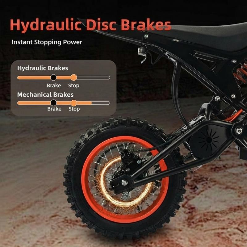 ·Dual Hydraulic Disc Brakes & Steel Frame: Large front and rear brake discs deliver consistent stopping power in mud, water, and sand. Reinforced steel frame supports up to 265 lbs while maintaining agile handling.