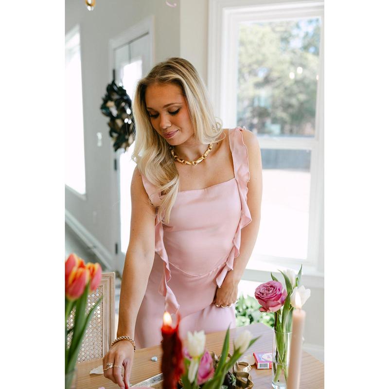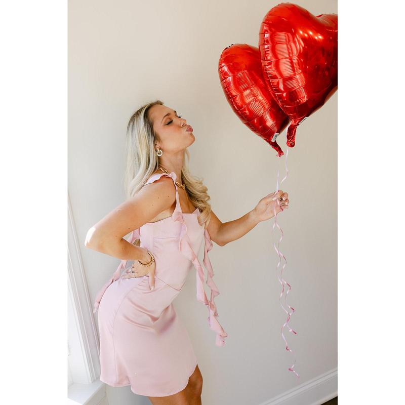 The Esme Pink Ruffled Satin Mini Dress is a romantic, statement-making piece with soft shine and feminine detail. Crafted from mauve pink satin fabric, this dress drapes beautifully with a smooth, luxe feel. The mini length keeps the look playful, while layered ruffle details add movement and charm to the silhouette.