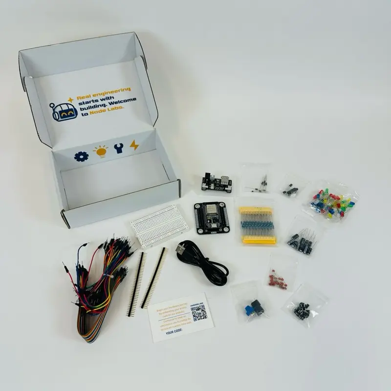 Node Labs kits pair with our web-based learning platform at NodeLabs.app, where our guided lessons and private, AI tutor walk you through each project step by step. Progress through levels, unlock new skills, and actually understand what you’re building and why. It’s not just a parts bag, it’s a full learning experience. Every kit includes a private access code for lifetime premium access to all guided lessons.