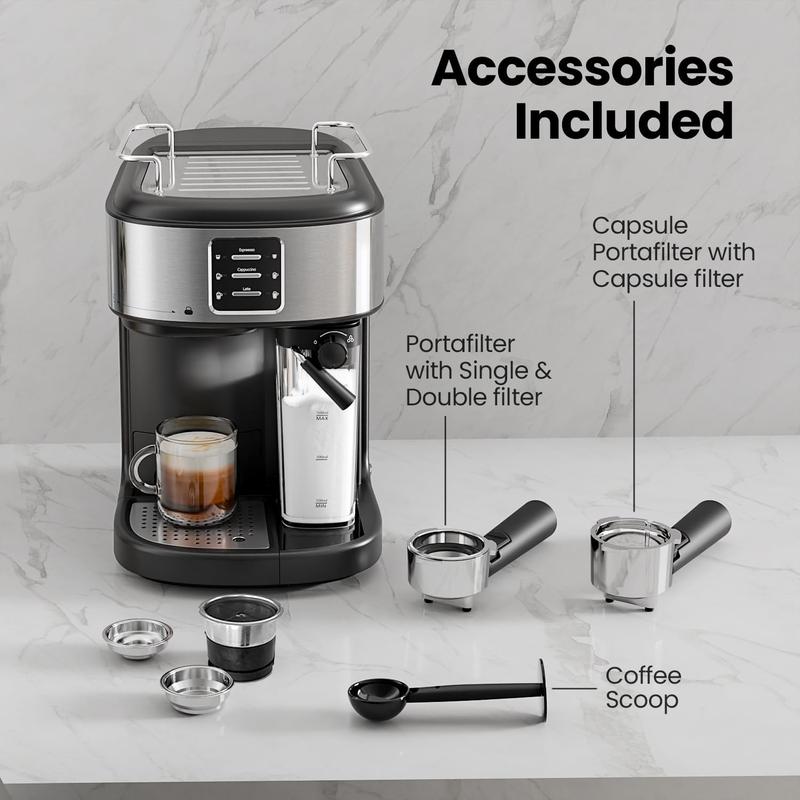 La verdad no cumplió mi expectativa la compré porque era para varios café por ejemplo quería el café normal y las cápsulas en un solo equipo como decía pero el café de las cápsulas no sirve es agua lo que sale y no comprendo porque para mí no cumplió con lo que necesitaba