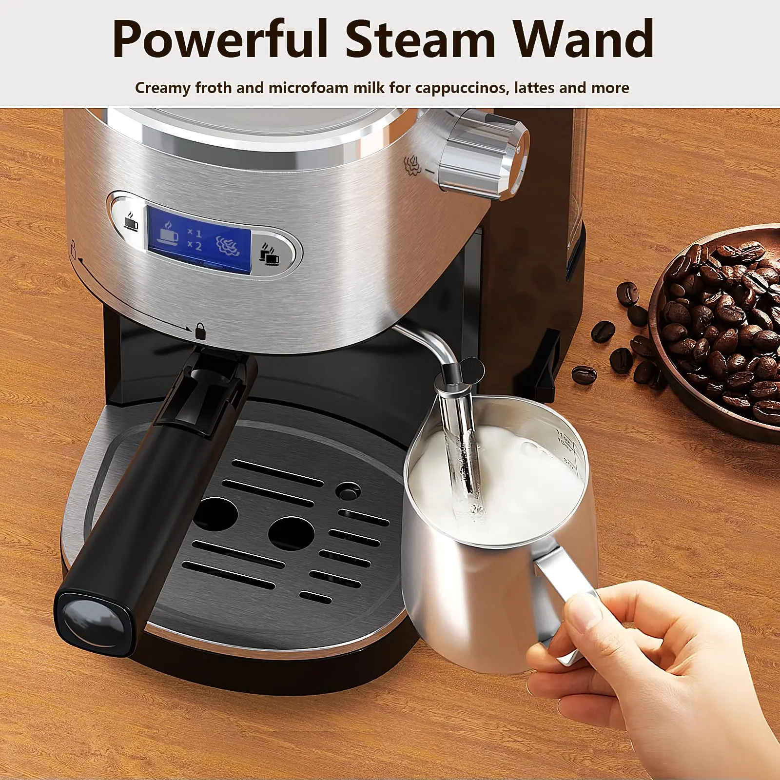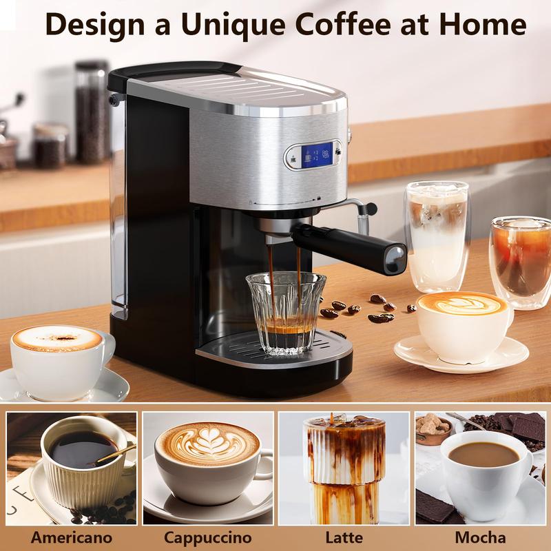 ·【 Fashionable coffee machine 】The coffee machine with a milk frother allows you to make all your favorite espresso. You can enjoy latte, cappuccino, or macchiato made by this coffee machine at home or in the office. Stainless steel appearance, fashionable and durable, very suitable for any size of kitchen. The compact design is also very suitable as a gift for parents, friends, or for girlfriends or wives on Christmas or Valentine's Day.