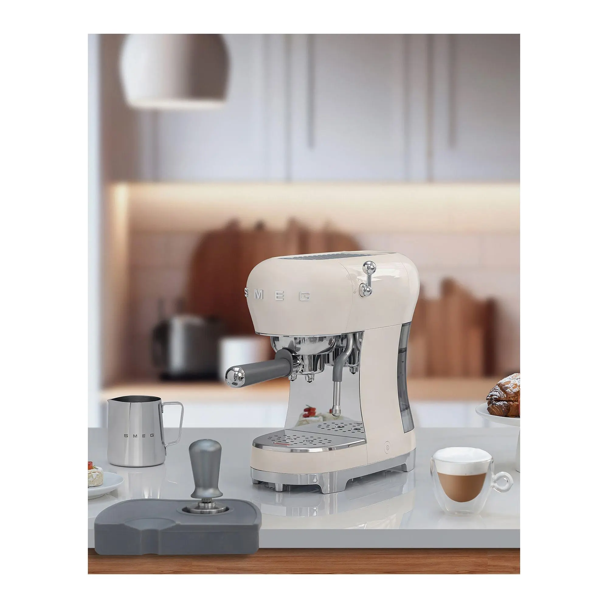 Step up your coffee game with the SMEG 50s Retro Style Manual Espresso Machine. Perfect for brewing single or double espressos or even long drinks, this machine features a user-friendly control panel, a Thermoblock heating system, and a passive cup warmer. Its adjustable coffee temperature and customizable brew size options ensure every cup is just how you like it. From SMEG.
