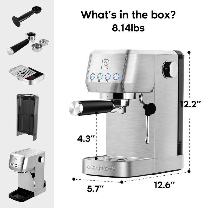 CASABREWS Espresso Machine, 20 bar compact Semi-Automatic Espresso Machine with Milk Frother for Home and Office, Perfect for Ground CoffeeCASABREWS Espresso Machine, 20 bar compact Semi-Automatic Espresso Machine with Milk Frother for Home and Office, Perfect for Ground Coffee