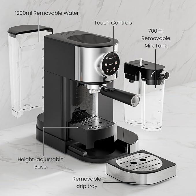 This espresso machine is perfect for making barista-quality coffee at home. It heats up quickly, delivers good pressure for a creamy espresso, and its compact design saves space. It's easy to use and clean, ideal for both beginners and coffee lovers. Excellent value for money.