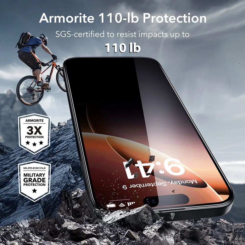 ·Ultimate Protection: made from high-quality tempered Armorite glass to resist impacts of up to 110 lb, keeping your screen safe from drops, bumps, and scratches