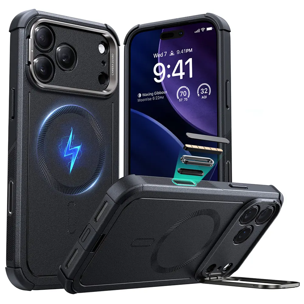 Ever fumble trying to prop up your iPhone for the perfect shot or binge-watch? The ESR case with stash stand and camera control keeps your iPhone 15, 16, or 17 models steady and ready. Its innovative stash stand supports flexible 0-85° angles, perfect for hands-free video calls or movie nights. Snap photos effortlessly with precise camera control using simple clicks, presses, or swipes. Built tough with a 3-layer structure, this case absorbs shocks from drops up to 23 feet, military-grade style. The soft inner Poron lining cushions impacts while the hard outer shell resists scratches. Plus, the magnetic ring is 25% stronger than competitors, ensuring your MagSafe chargers and accessories stay locked in place for fast wireless charging. Lightweight but durable, it’s designed to keep your phone safe without bulk. Comes in multiple colors and fits various iPhone models including Pro and Max versions. With a 12-month protection plan and lifetime support, you’re covered every step of the way. Ready to upgrade your iPhone protection with style and smart features? Grab your ESR case and enjoy hands-free convenience and military-grade defense today!