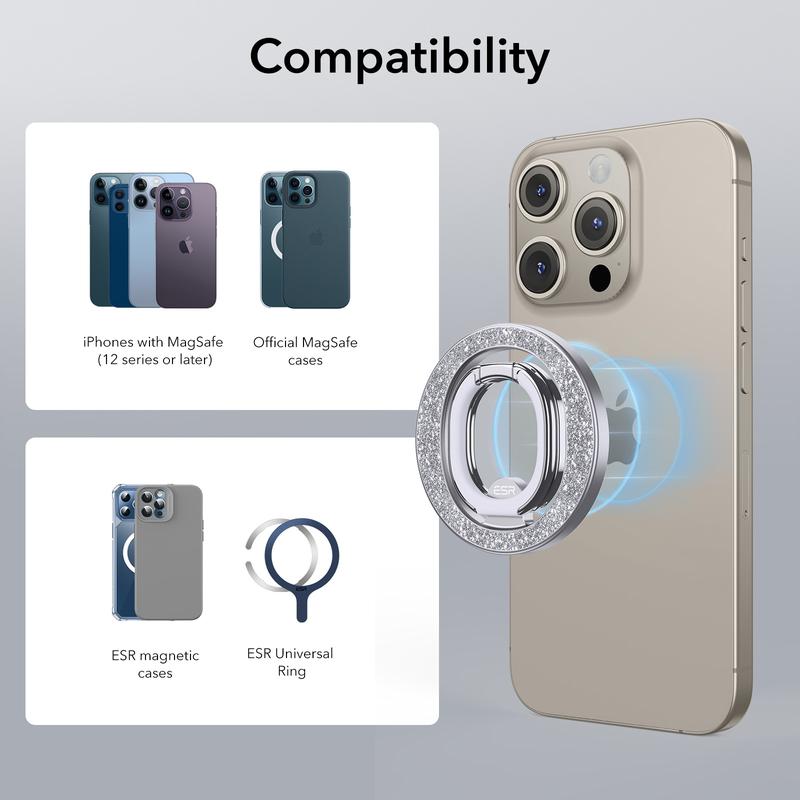 ·Strong Magnetic Lock: magnets with a holding force of 1,200 g create a powerful lock on your caseless phone or phone with a MagSafe or HaloLock case, ensuring this ring holder only comes off when you want