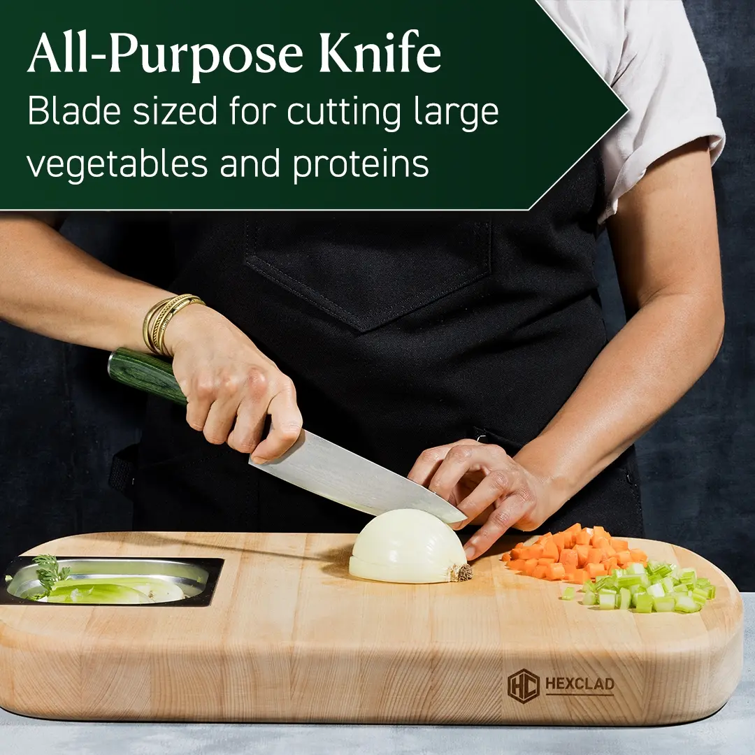 ·Stunning green Pakkawood handle–infused with resin to increase resistance to cracking–is contoured for amazing comfort and grip.