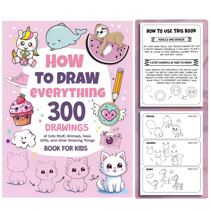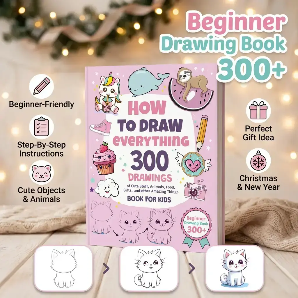 Essential Drawing Guide for Beginners, Step-By-Step Instructions for Cute Objects & Animals, Perfect Christmas & New Year Gift Ideas