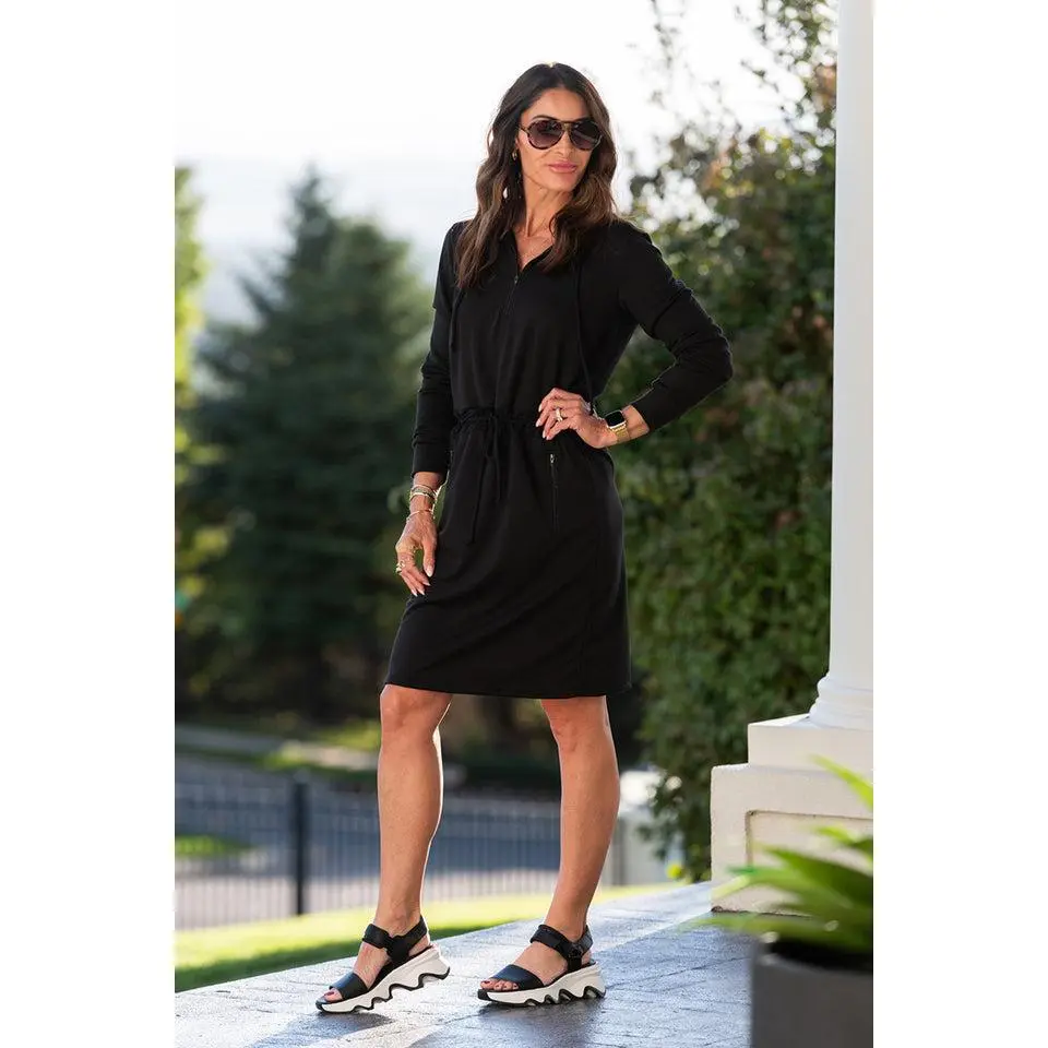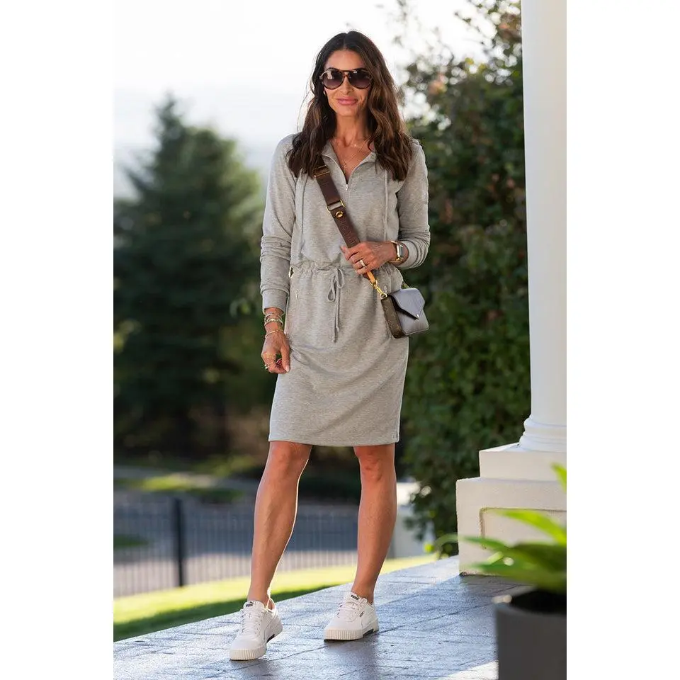 When comfy calls...this dress answers. This dress is essential for on-the-go women to keep you cozy wherever your day takes you. You will reach for it over and over and over again this season!
