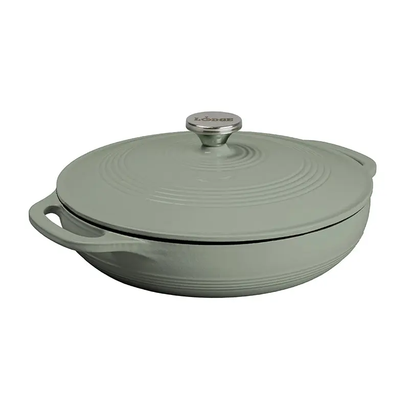This piece is a host’s best friend. Get all the benefits of cast iron cooking—great heat retention and durability—without fear of rust. The casserole’s enameled surface can stand up to acidic ingredients, marinate foods, and even store leftovers in the fridge. Have potluck, will travel.