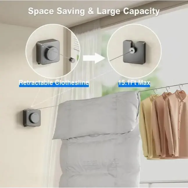 Space-Saving Design – When not in use, simply retract the line to keep your space neat and tidy. Ideal for apartments and small living spaces.