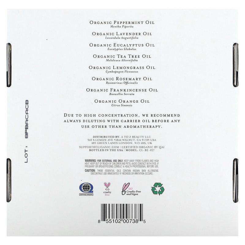 5. Cliganic The Iconics, Essential Oil Aromatherapy Set, 8 Piece Set, 0.17 fl oz (5 ml) Each